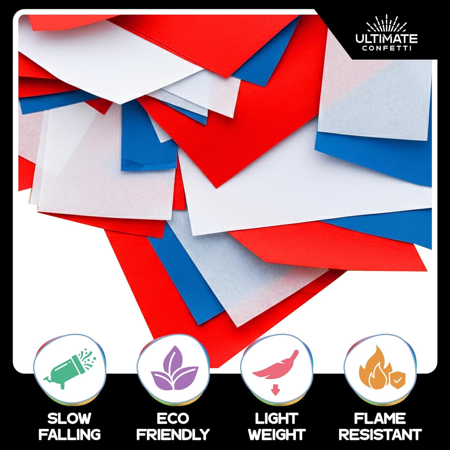 - Safe and Family-Friendly Fun: Crafted with flame-resistant material, the red, white, and blue confetti is safe for children, pets, and adults alike. Add a joyful and worry-free touch to school assemblies, backyard celebrations, or social events in any setting.
