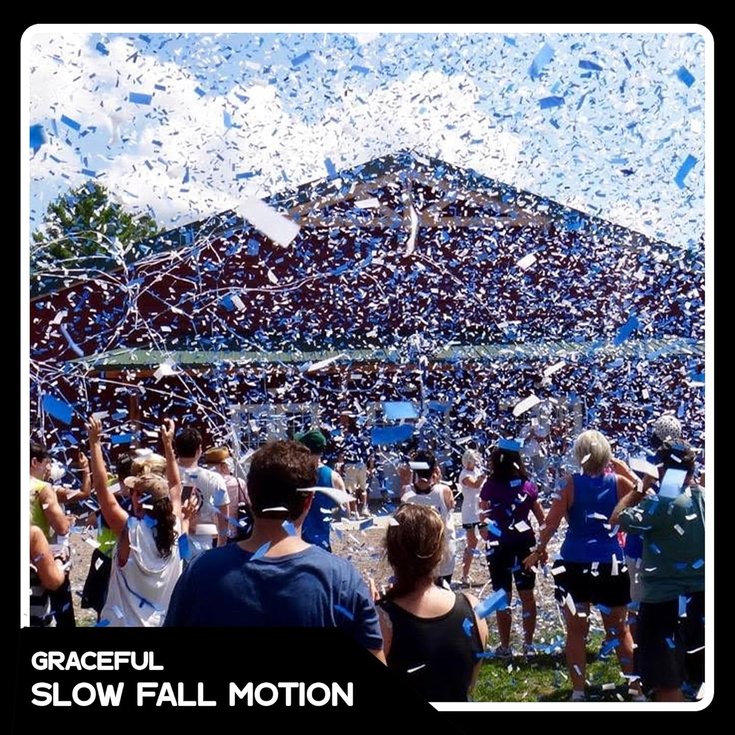 - Dramatic Slow Fall Flutter Effect: Measuring 2" x ¾", the rectangular tissue confetti pieces float slowly through the air with a mesmerizing flutter. Whether tossed by hand or launched, they create beautiful motion perfect for photos, making your big moments more cinematic and visually captivating.