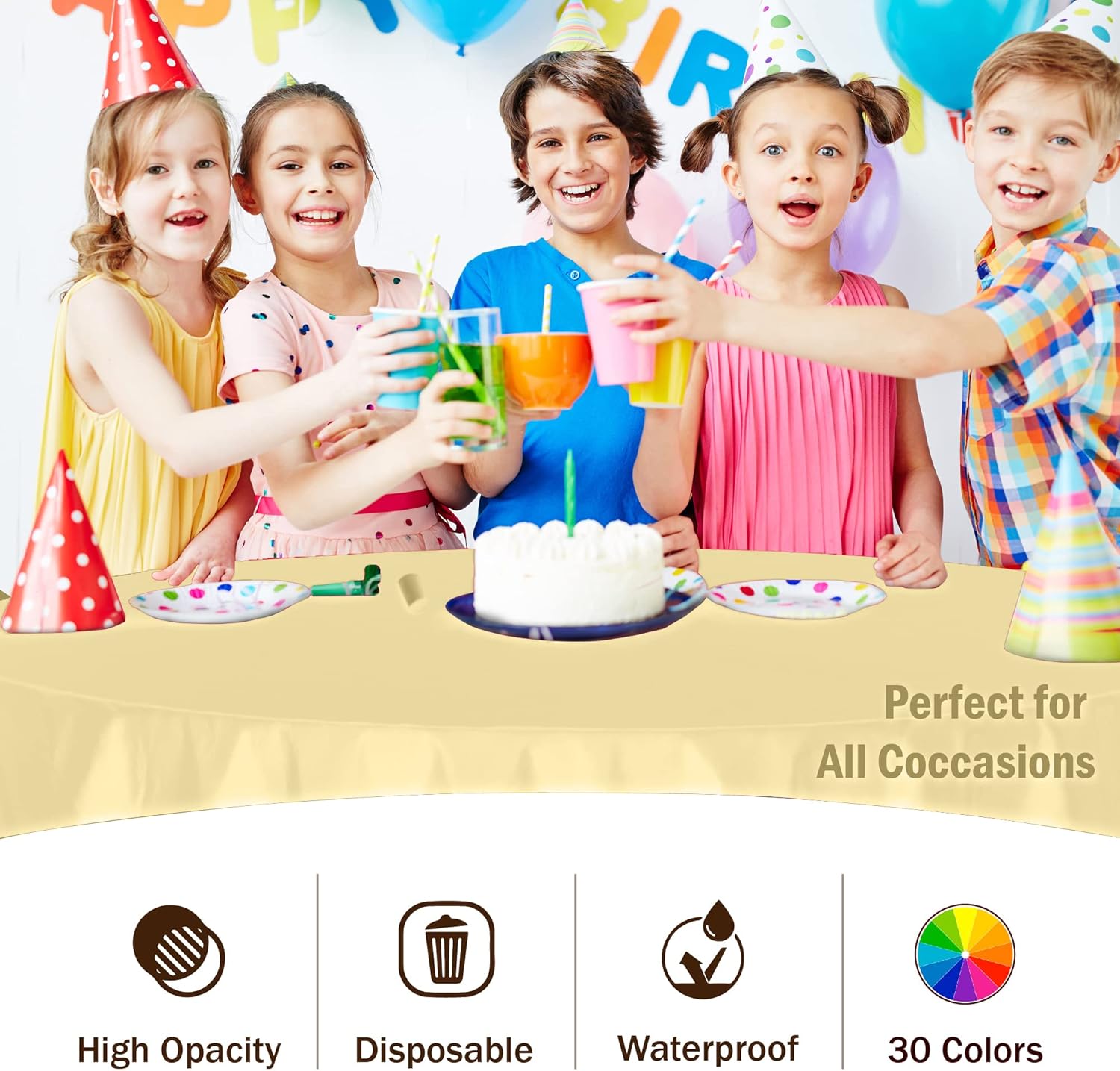 - 84" - covers any table up to 6 ft.^over 30 colors available^High opacity - covers any table with minimal transparency^Disposable - cleanup is easy!^Budget friendly