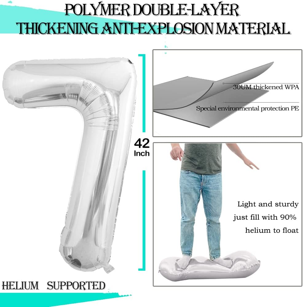 - Package Includes:Number 7 Balloons*3,42 inch,32 inch,16inch each,Straw*1