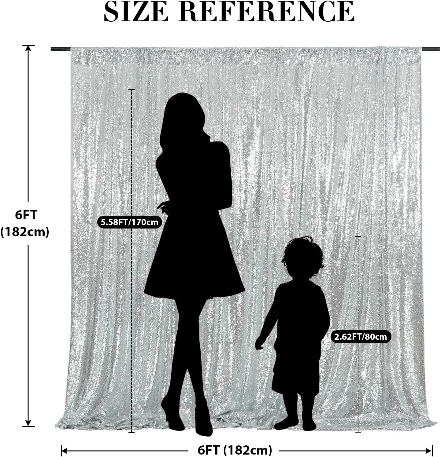 Eternal Beauty Silver Sequin Backdrop, 6x6 Ft Glitter Background Curtains for Shimmer Photography Party Wedding Birthday Back Drop Decor