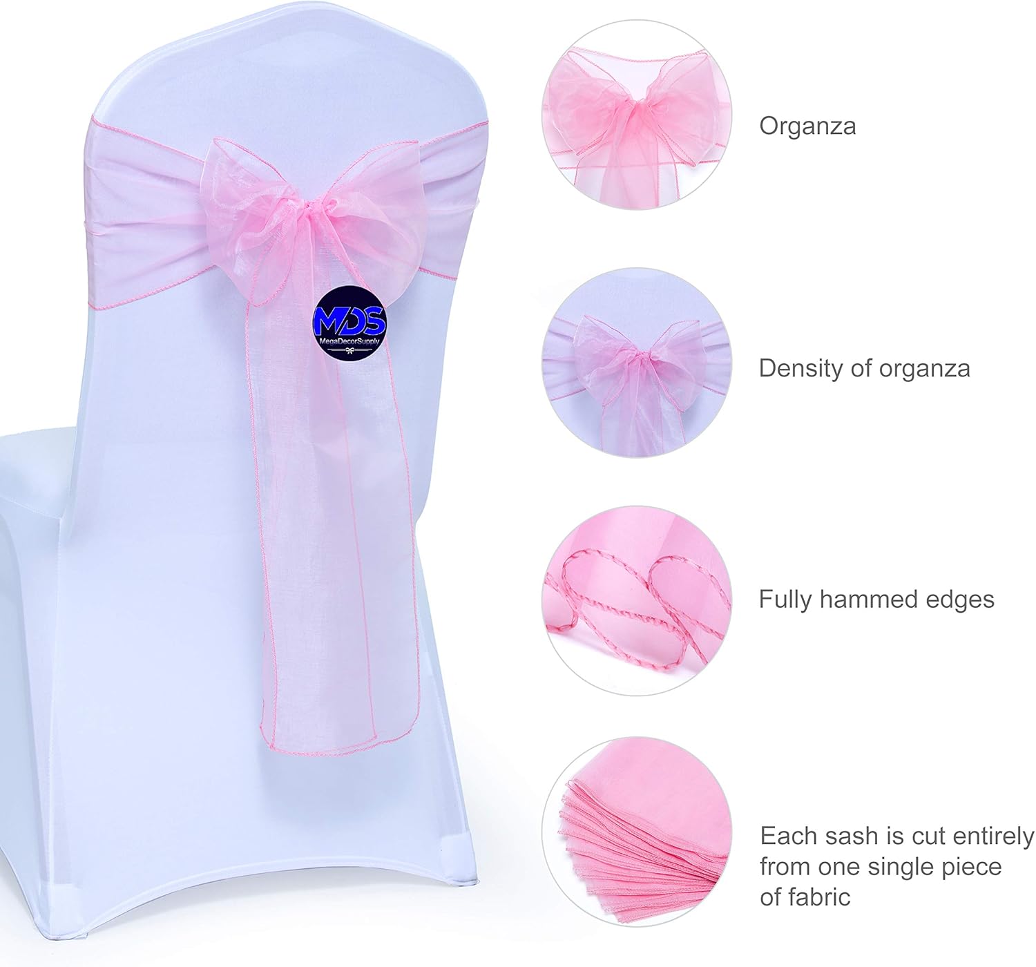 MDS Pack of 125 PCS Organza Chair Sashes Wider Dining Chair Bows Ribbon Tie Back for Wedding Party Birthday Bridal Shower Reception Event Banquet Home Chair Cover Decoration - Blush Pink
