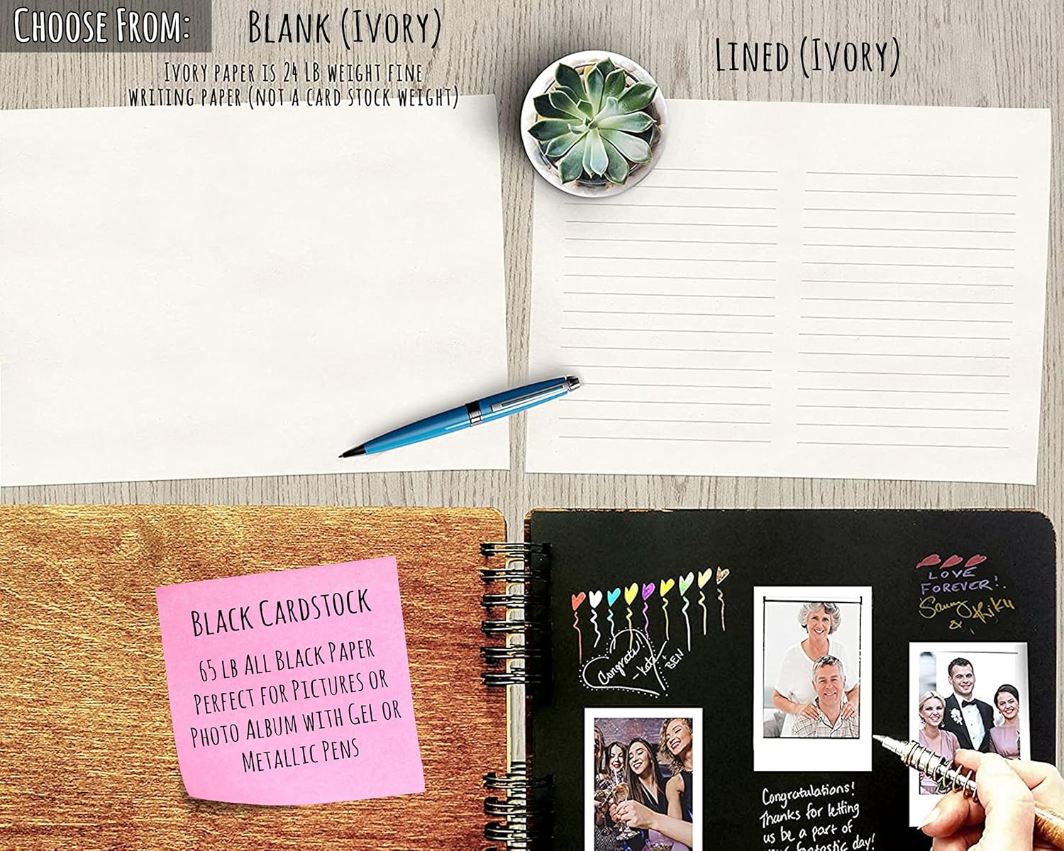 - 80 Pages in either Ivory blank or lined 24 Lb writing paper or all black card stock pages ( 65 Lb weight cardstock paper). Perfect combination of Guest Registry and Wish cards, Wedding guests can just sign the guest book pages or add and free form their advice for the newlyweds. Each page can easily accomodate 4 or more guest entries. The Ivory pages can be upgraded to 120 Pages (60 sheets)