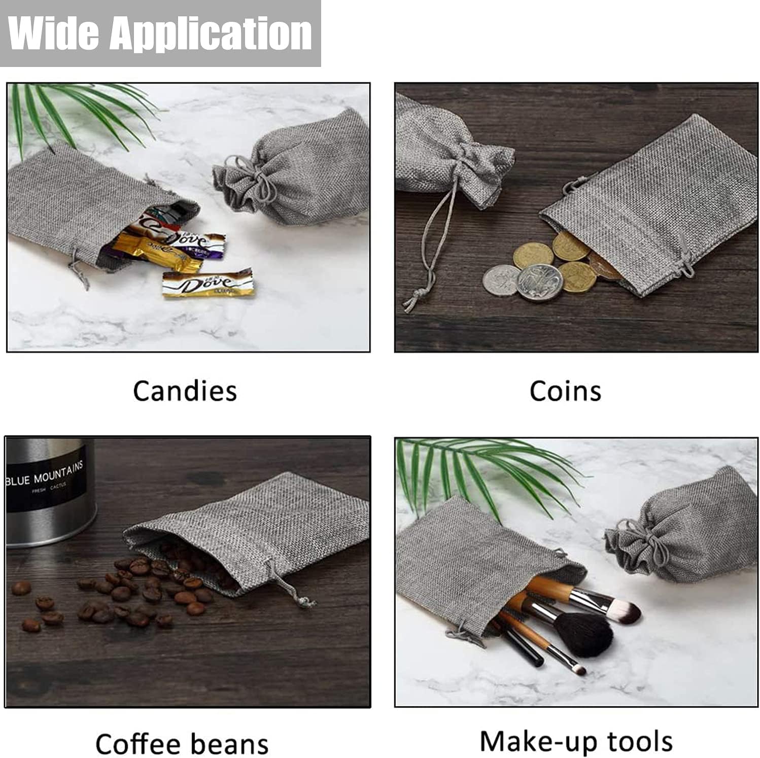- The natural bags are suitable for wedding, bridal shower, birthday, party, celebrations, festival, baby shower ect; Perfect for favor, gifts, jewelry, cosmetic, coins, watches, sachets, coffee beans, seeds, soaps, candles and so on.