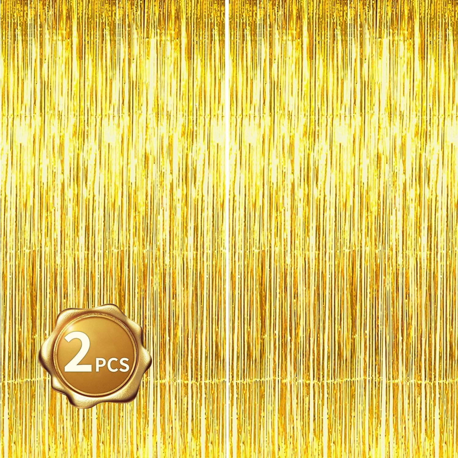 BEISHIDA 2 Pcs Gold Door Streamers Tinsel Curtain Party Streamers Backdrop Fringe Foil Wall Background for Birthday Halloween Christmas Wedding Party Decoration(3.28 ft x 6.56 ft)