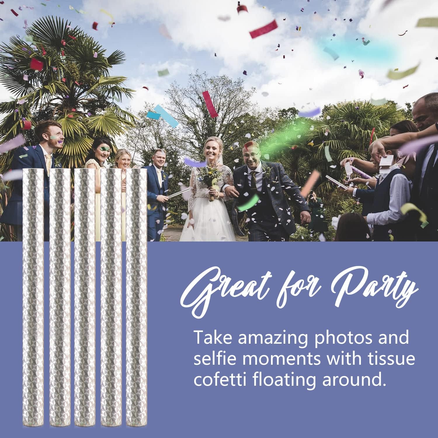 - Superior Safety : Our confetti shoots are made of tissue paper suitable for every age! There is no air inside, and no big noise when use, just biodegradable confetti inside the tube. Enjoy your party and have a great fun with this safety way