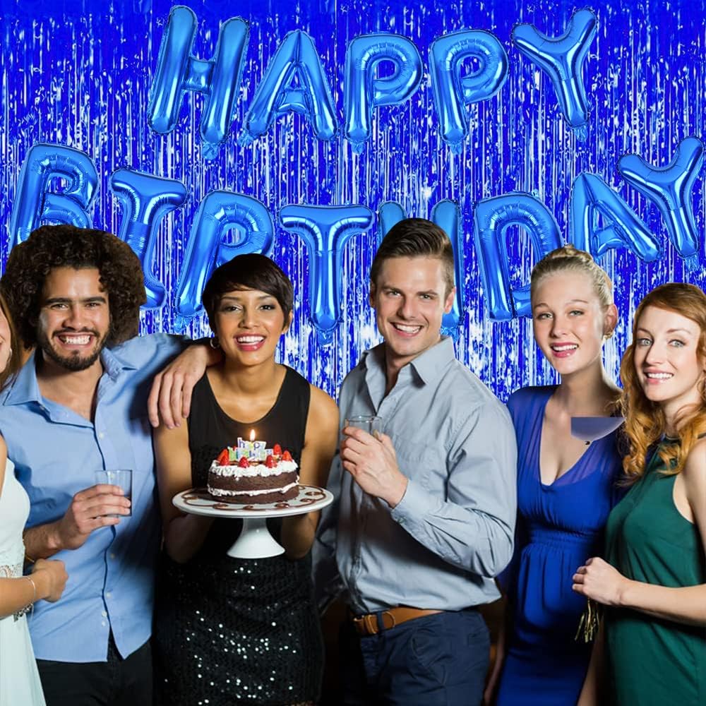 3 Pcs Blue Tinsel Foil Fringe Curtains,3.28ft x 6.56ft Gold Photo Booth Backdrop Streamer Curtain,Photo Booth Props,Ideal Bachelorette Party Supplies, Birthday, Christmas,New Year Decorations…