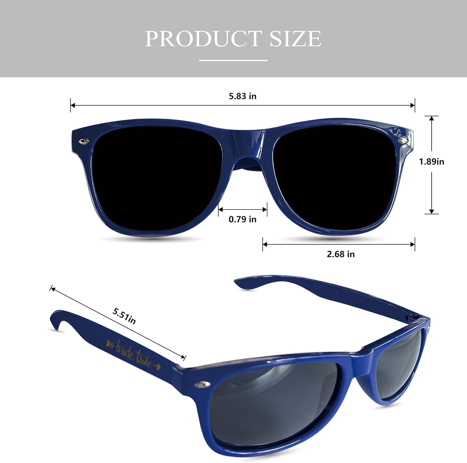 - Bachelorette Sunglasses Set---This Bachelorette Sunglasses kit contains a total of 1 Pair of white 'Bride' Sunglasses, 9 Pairs Navy 'Brides tribe' Sunglasses for bridesmaid. Great idea for Bachelorette party and bridal party.