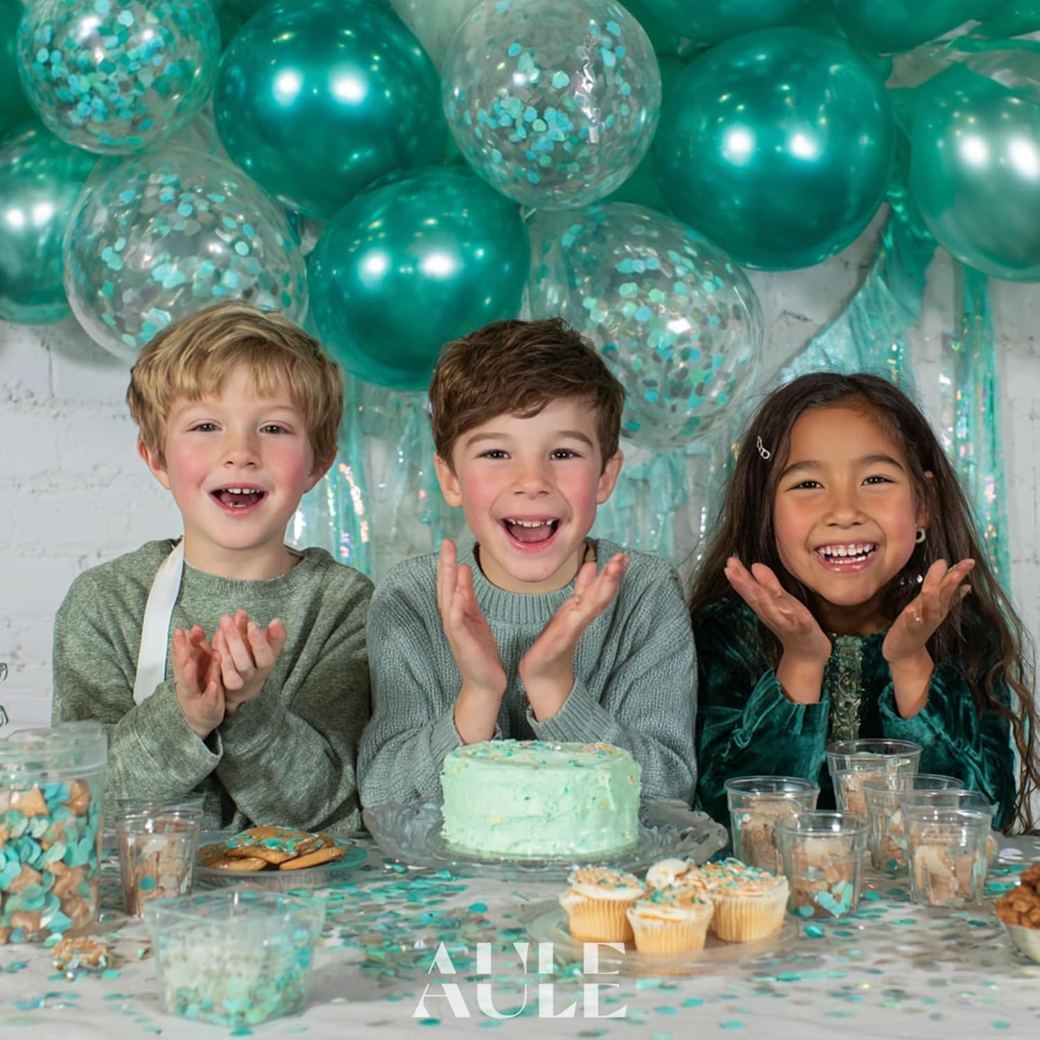 AULE Party Balloons Pack of 42 - Metallic Green Balloons & Confetti Balloons and 64ft Ribbons - 12 Inch Teal Green Balloon Decorations Set
