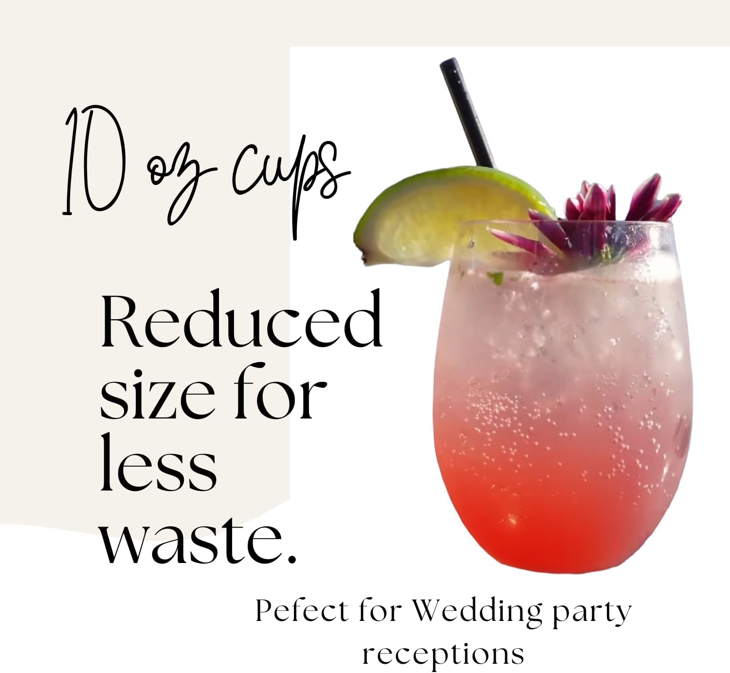 - Compact Small 10 oz Size – Perfect for Light Pours Each glass holds up to 10 ounces, ideal for serving wine, cocktails, juice, or tastings. A smaller size that helps guests avoid over-pouring and waste at events. Durable and Shatterproof: Made from impact-resistant plastic, these glasses are perfect for worry-free enjoyment, whether you're at home or outdoors.excursion.