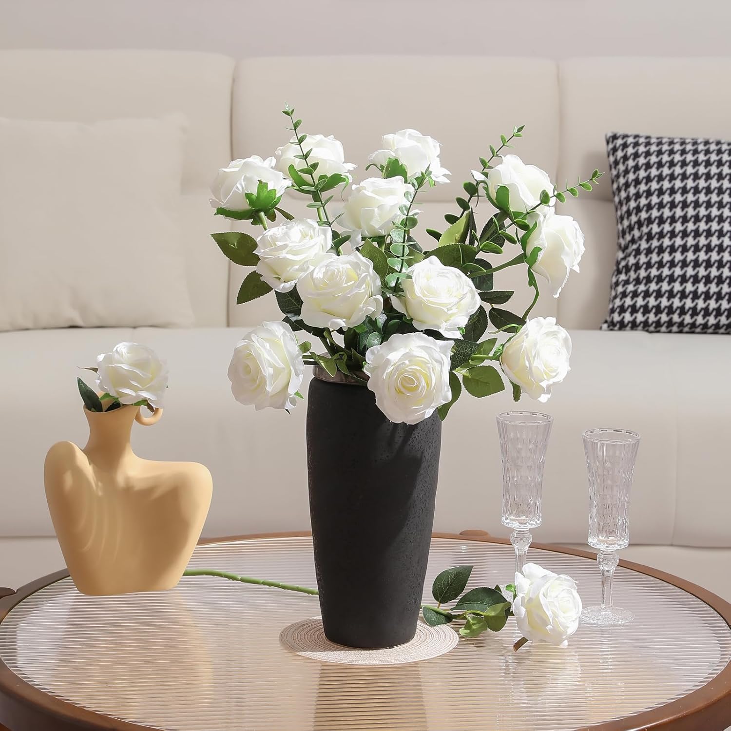 Tifuly White Roses Artificial Flowers -12 pcs Realistic Single Long Stem Fake Silk Roses Bouquet for Party Home Wedding Centerpiece Office DIY Decor(Off White)