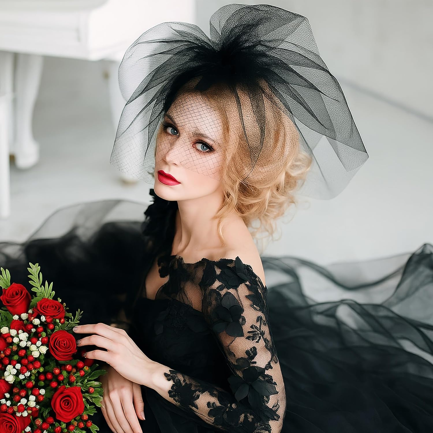 Ayliss Women Mesh Veils Black Bridal Birdcage Short Wedding Face Veil with Clip Tulle Gothic Bride Halloween Costume
