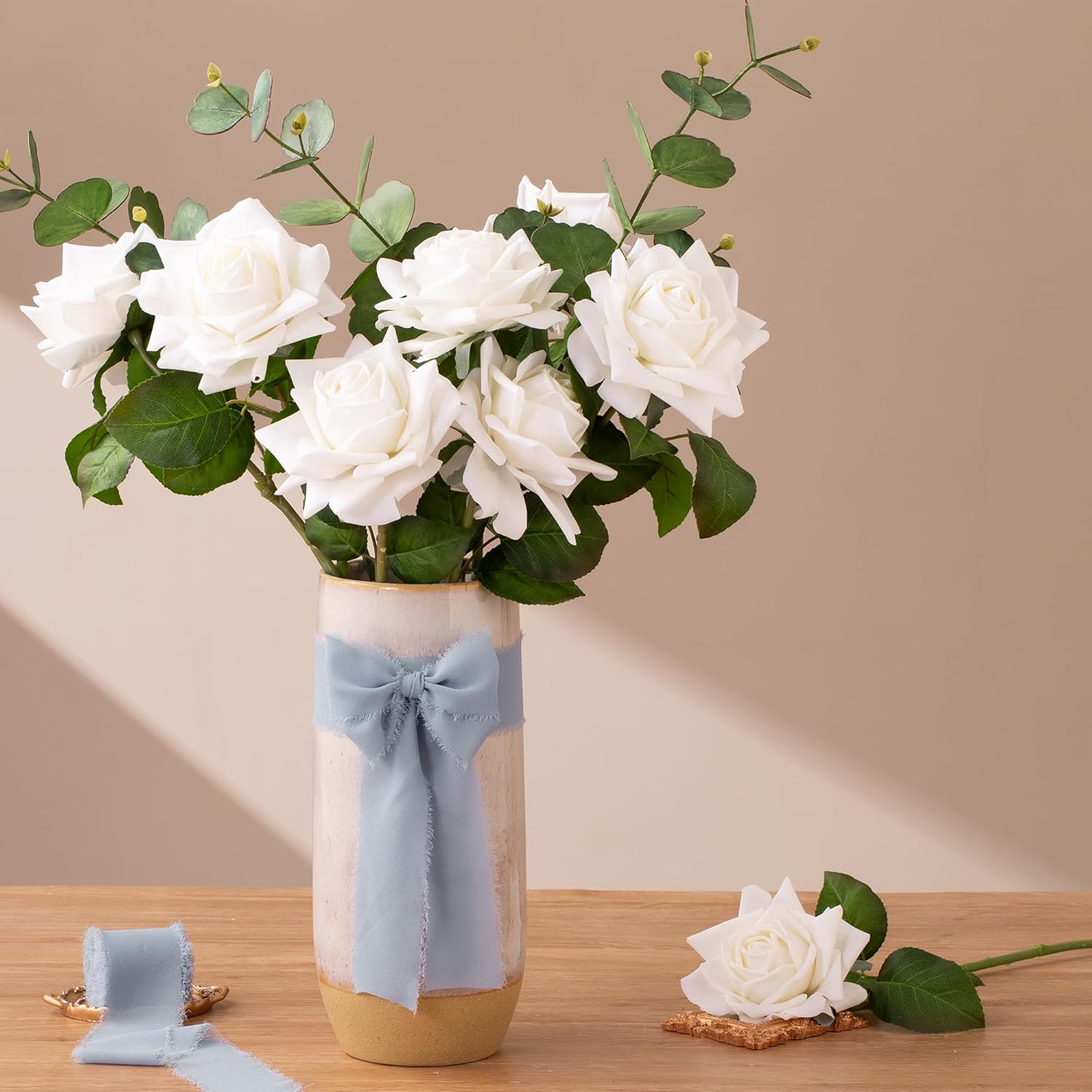 - 【Size and Color】Each roll of chiffon ribbon is 2 inches wide and 7 yards long, perfect for various creative uses such as making bows, decorating wreaths, and DIY crafts. This set includes 3 rolls dusty blue ribbons. These vibrant frayed ribbons add a rustic charm to your creations, ideal for bouquet wrap or gift ribbon.