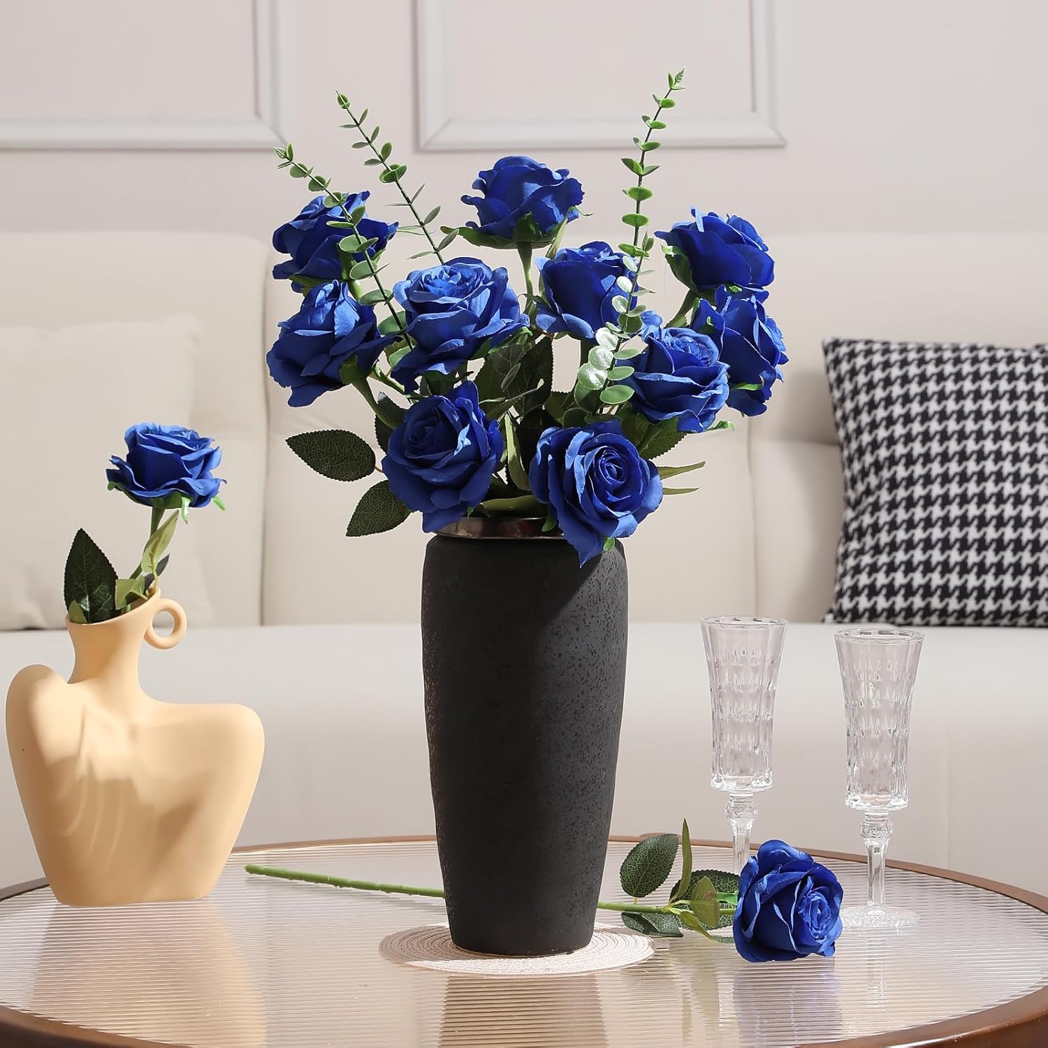 Tifuly Royal Blue Roses Artificial Flowers -12 pcs Realistic Single Long Stem Fake Silk Roses Bouquet for Party Home Wedding Centerpiece Office DIY Decor