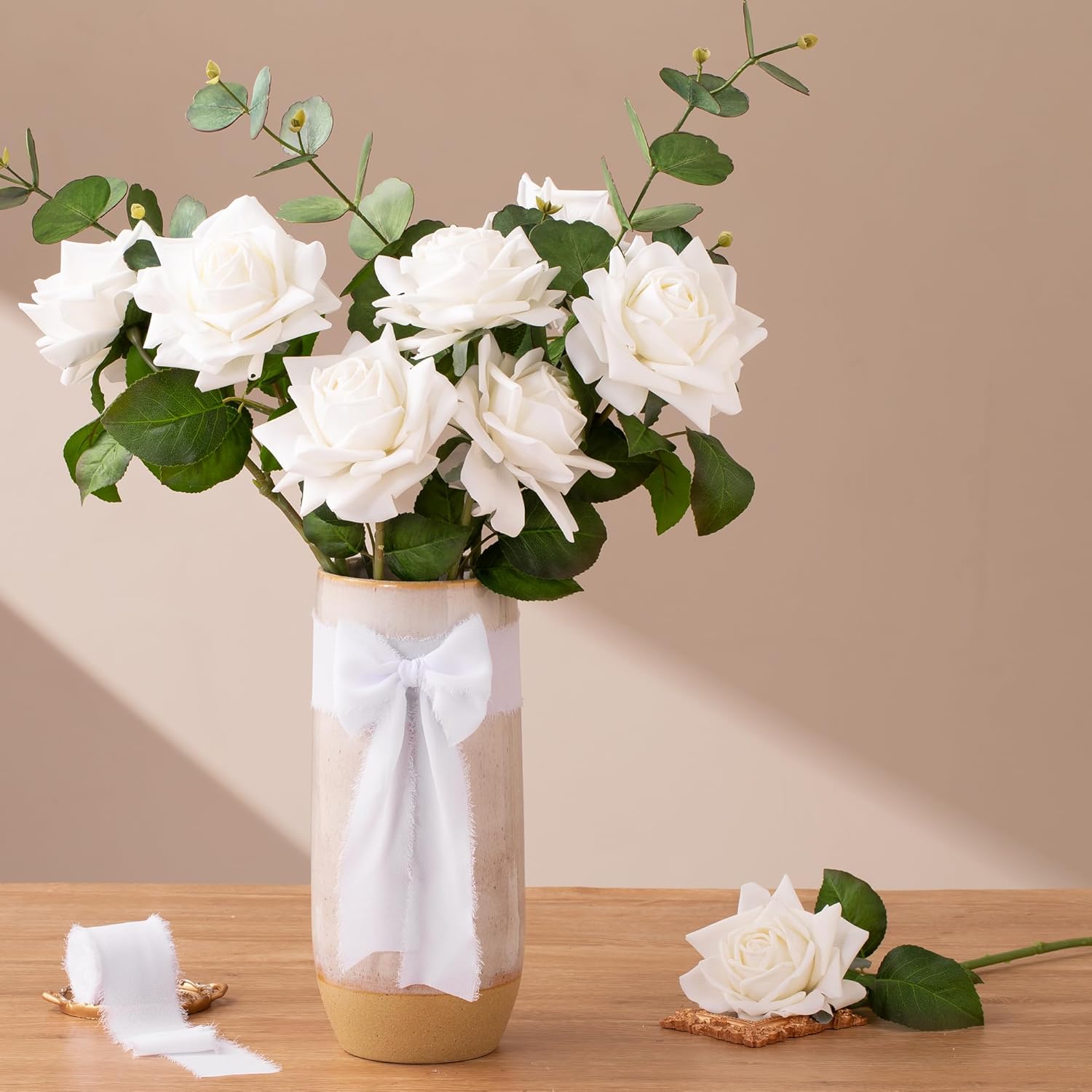 - 【Size and Color】Each roll of chiffon ribbon is 2 inches wide and 7 yards long, perfect for various creative uses such as making bows, decorating wreaths, and DIY crafts. This set includes 3 rolls white ribbons. These vibrant frayed ribbons add a rustic charm to your creations, ideal for bouquet wrap or gift ribbon.