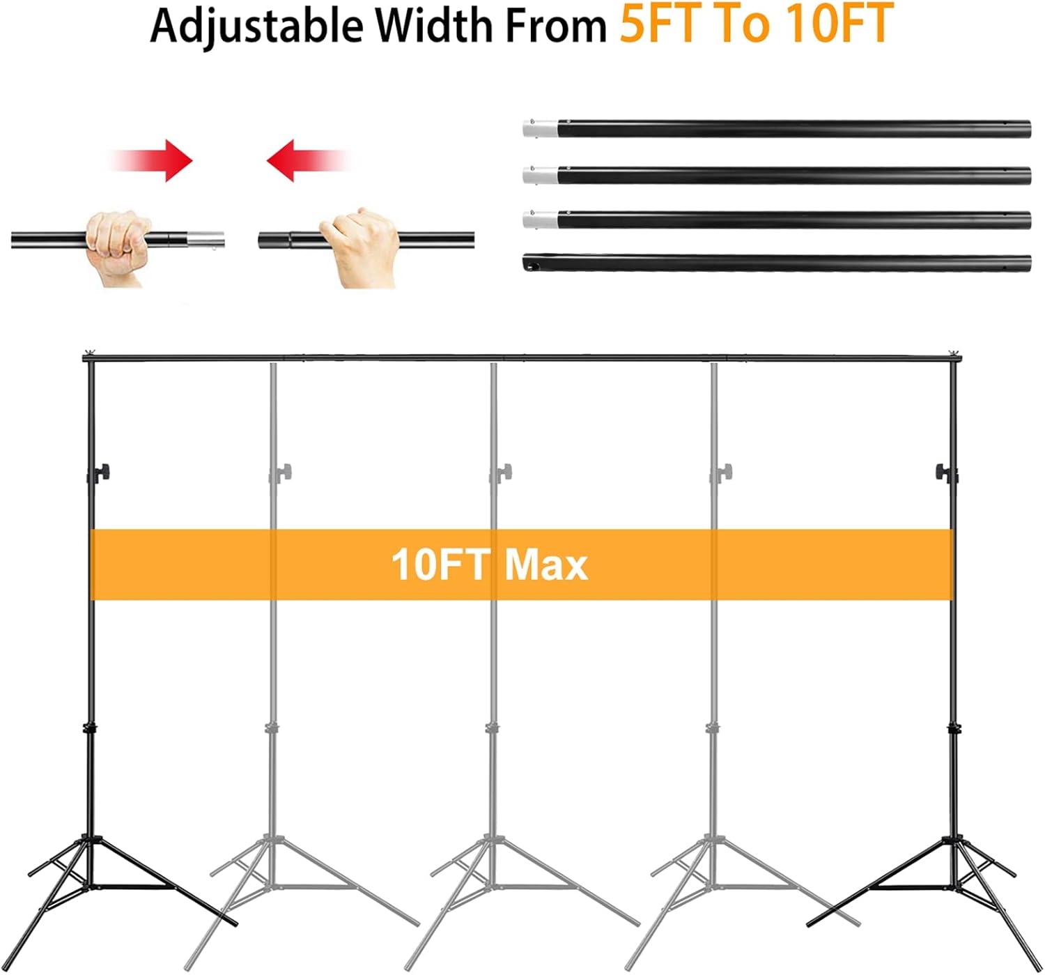 - πΈ **[Adjustable & Versatile Backdrop Stand]** β This photo backdrop stand features an adjustable width (5ft to 10ft) and height (2.5ft to 6.5ft), making it perfect for photo studios, parties, weddings, professional photography, video recording, and green screen setups.