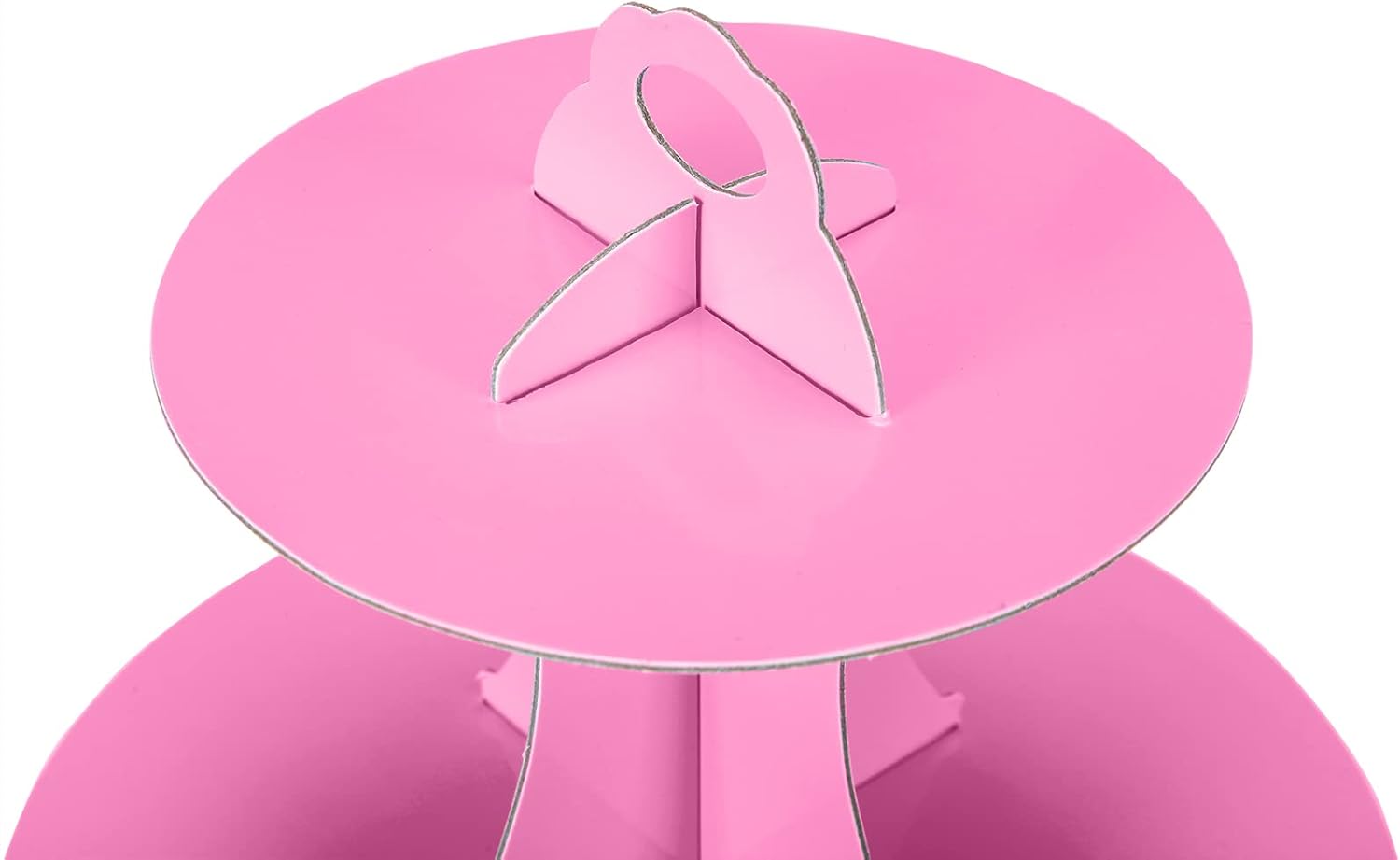 3-Tier Cupcake Stand, Cake Stand holder, Tiered DIY Cupcake Stand Tower for Dessert Table Displays, Birthday Theme Party Favors Decoration, Floral Tea Party, 12" W x 12.8" H, Pink