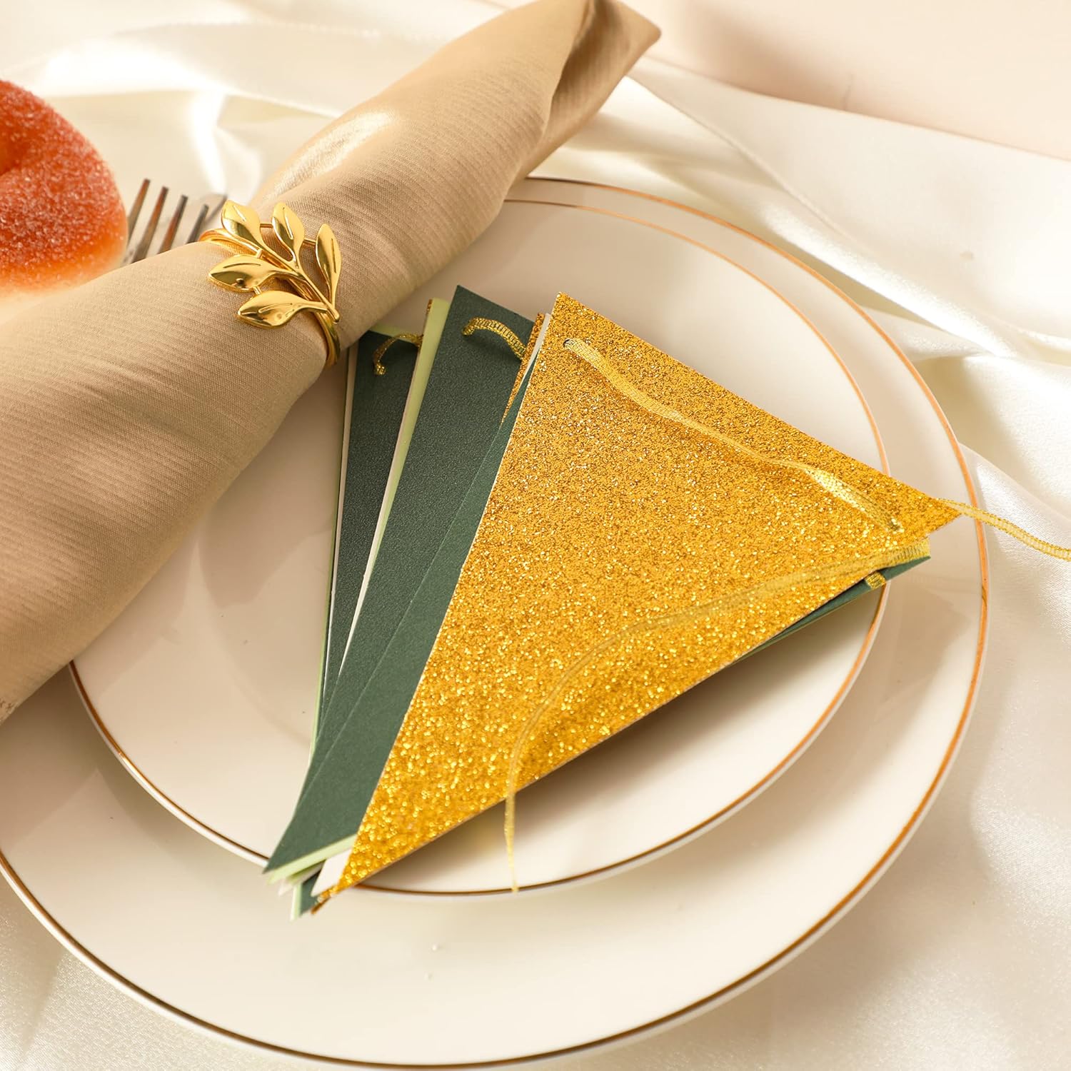 Fonder Mols Paper Pennant Party Decorations Large Gold Green(10 Feet), Triangle Flags Bunting, Paper Triangle Garland for Greenery Baby Shower Wedding Nursery Classroom Birthday Party