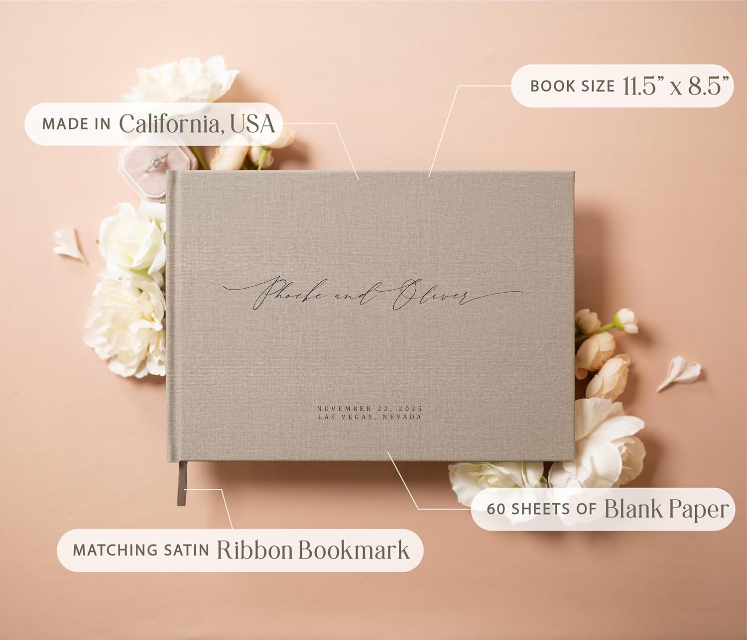 - This personalized guest book features a durable hard cover and a matching ribbon bookmark, offering a modern yet timeless way to collect signatures, messages, and memories from your special event.