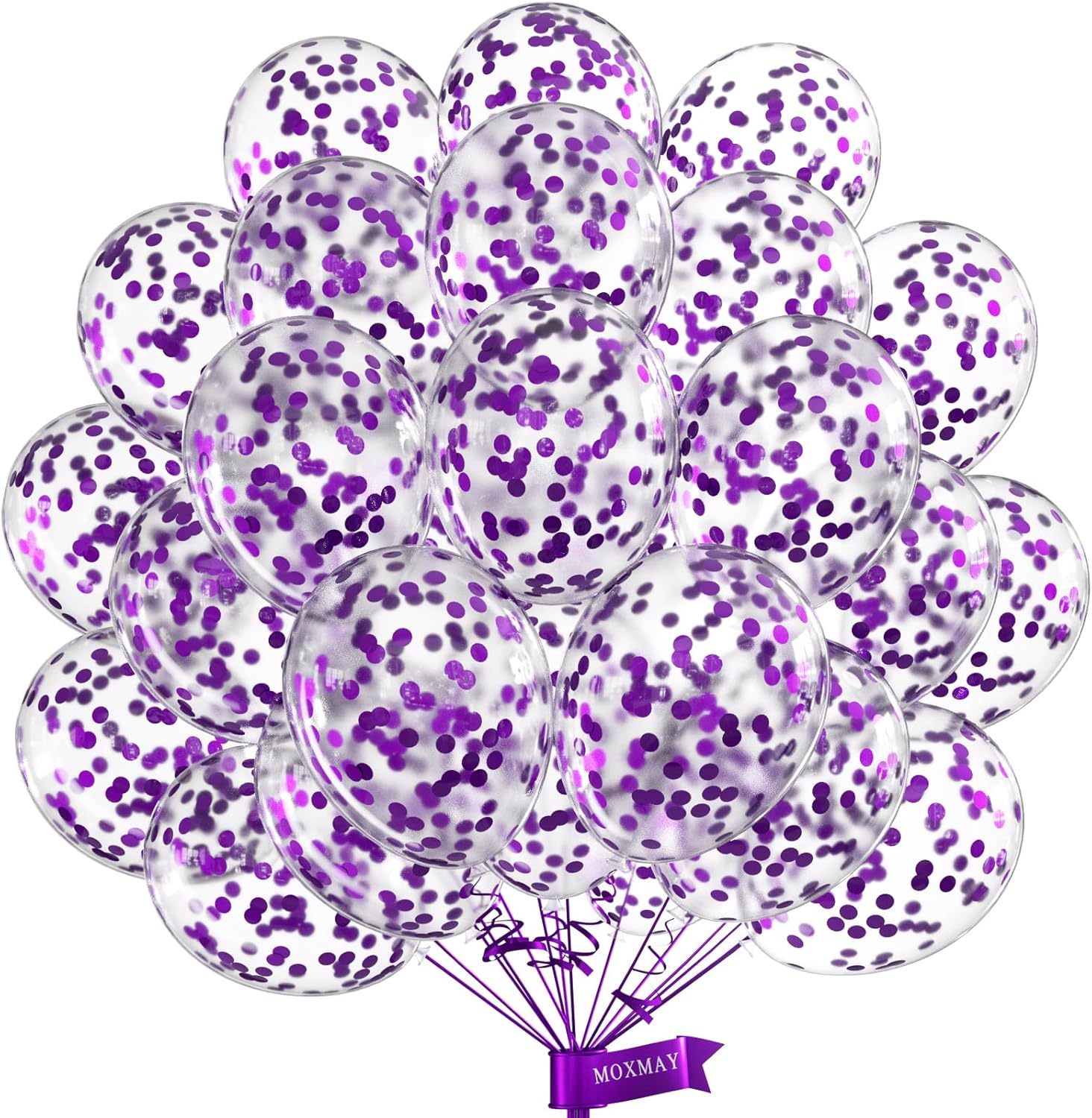 Purple Confetti Balloons, 12inch, 50 Pcs, Latex, Perfect for Birthdays, Unisex-Adults & Kids