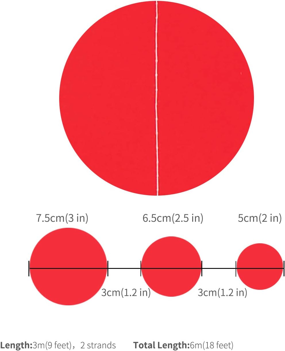 Red Paper Garland Circle Dot Party Banner Wall Streamers Backdrop Ceiling Hanging Decorations, 20 Feet in Total