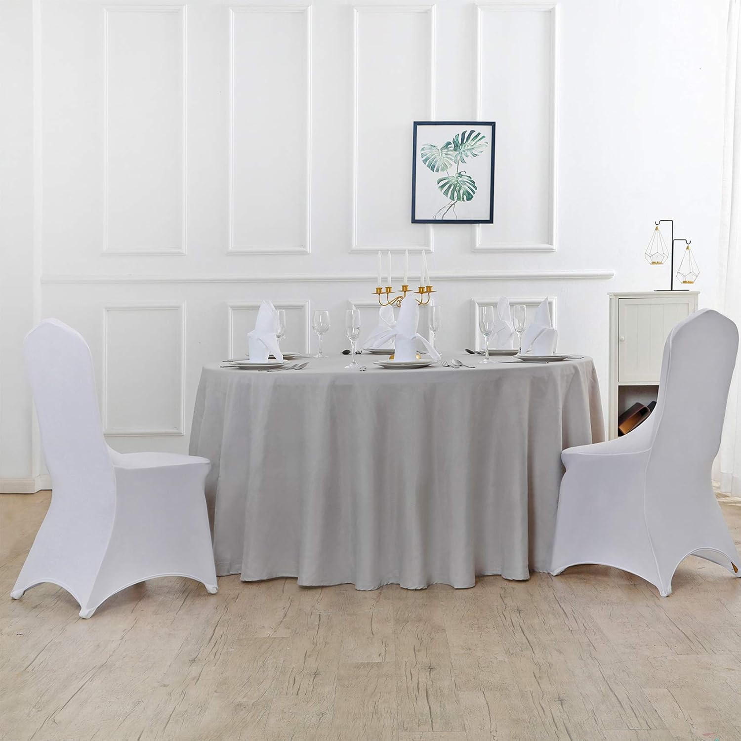 120 inch Round Tablecloth Washable Polyester Table Cloth Decorative Table Cover for Wedding Party Dining Banquet(120 inch,Silver)