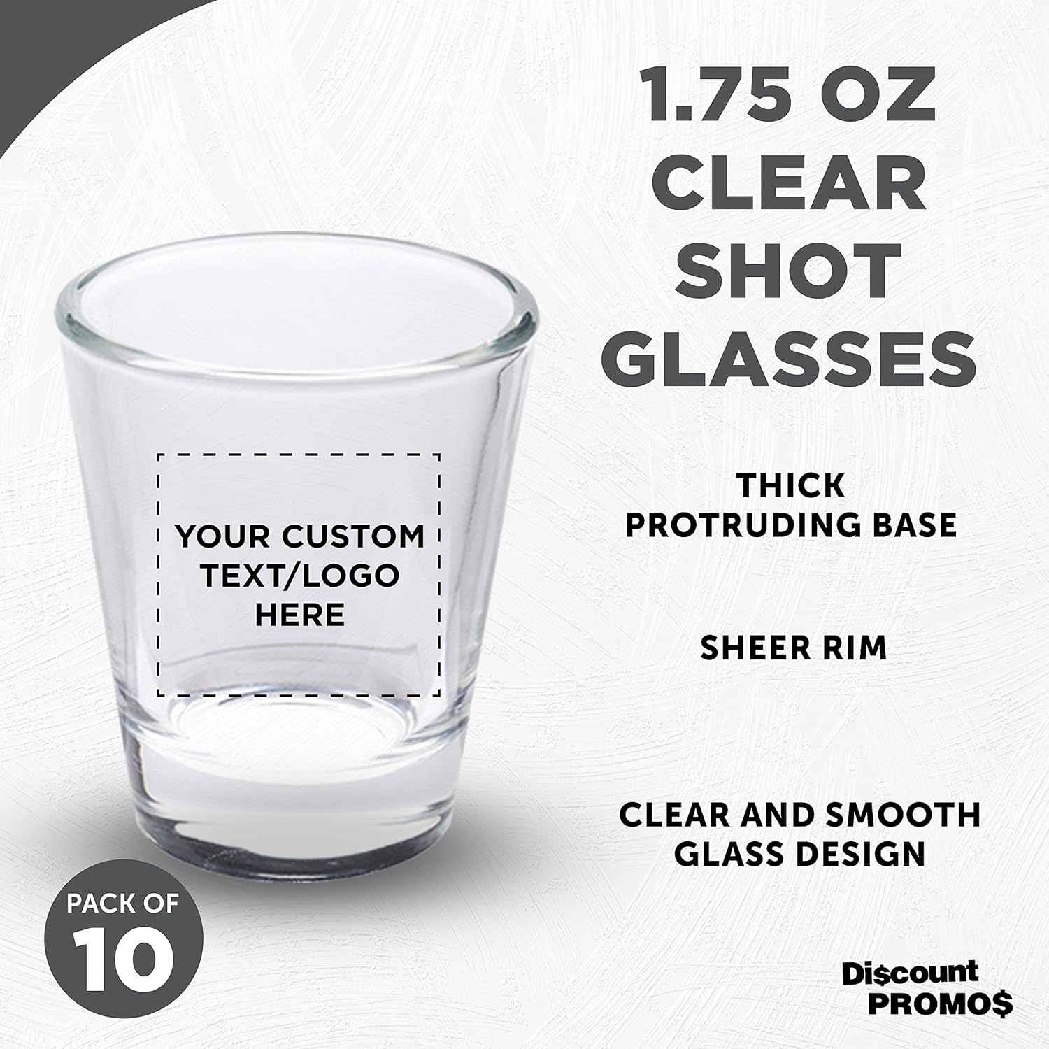 Custom Shot Glasses 1.75 oz. Set of 10, Personalized Bulk Pack - Great for Wedding Favors, Bachelorette Party Decorations, Party Fovors, Color Bottom - Clear