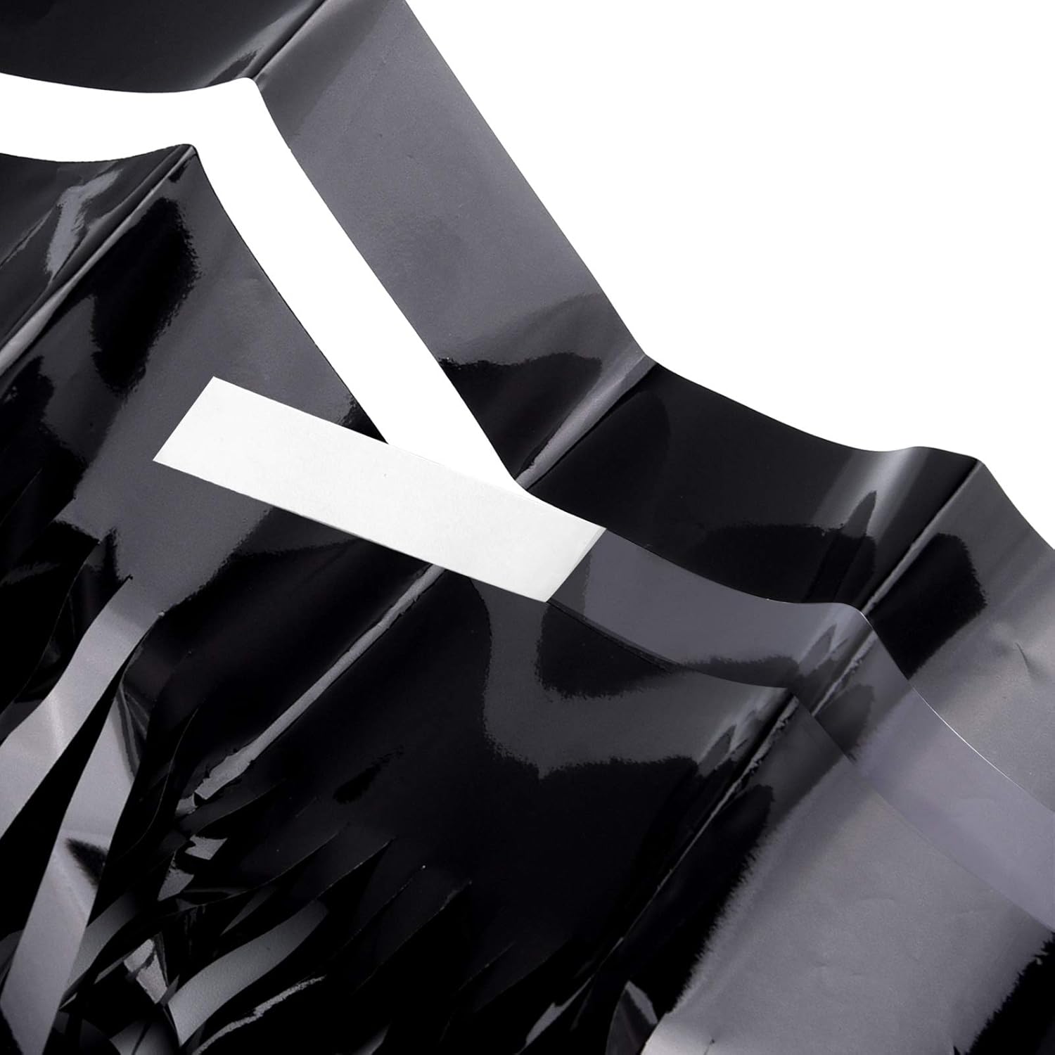 CHRORINE 2pcs 3ft x 8.3ft Black Tinsel Fringe Curtains Streamers Photo Backdrop for Birthday Graduation Halloween Anniversary Party Decorations