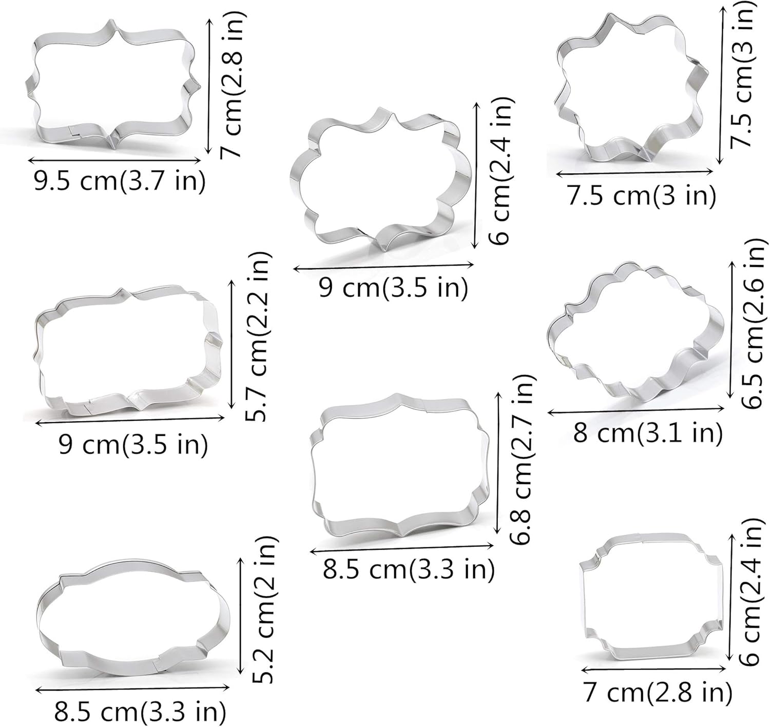 - ★【8 PCS OF FANCY PLAQUE COOKIE CUTTER SET】 - Stainless steel fancy plaque cookie DIY molds set, 8 different wedding frame blessing boxes shapes cookie cutting molds. Have fun to making cookie with families together.