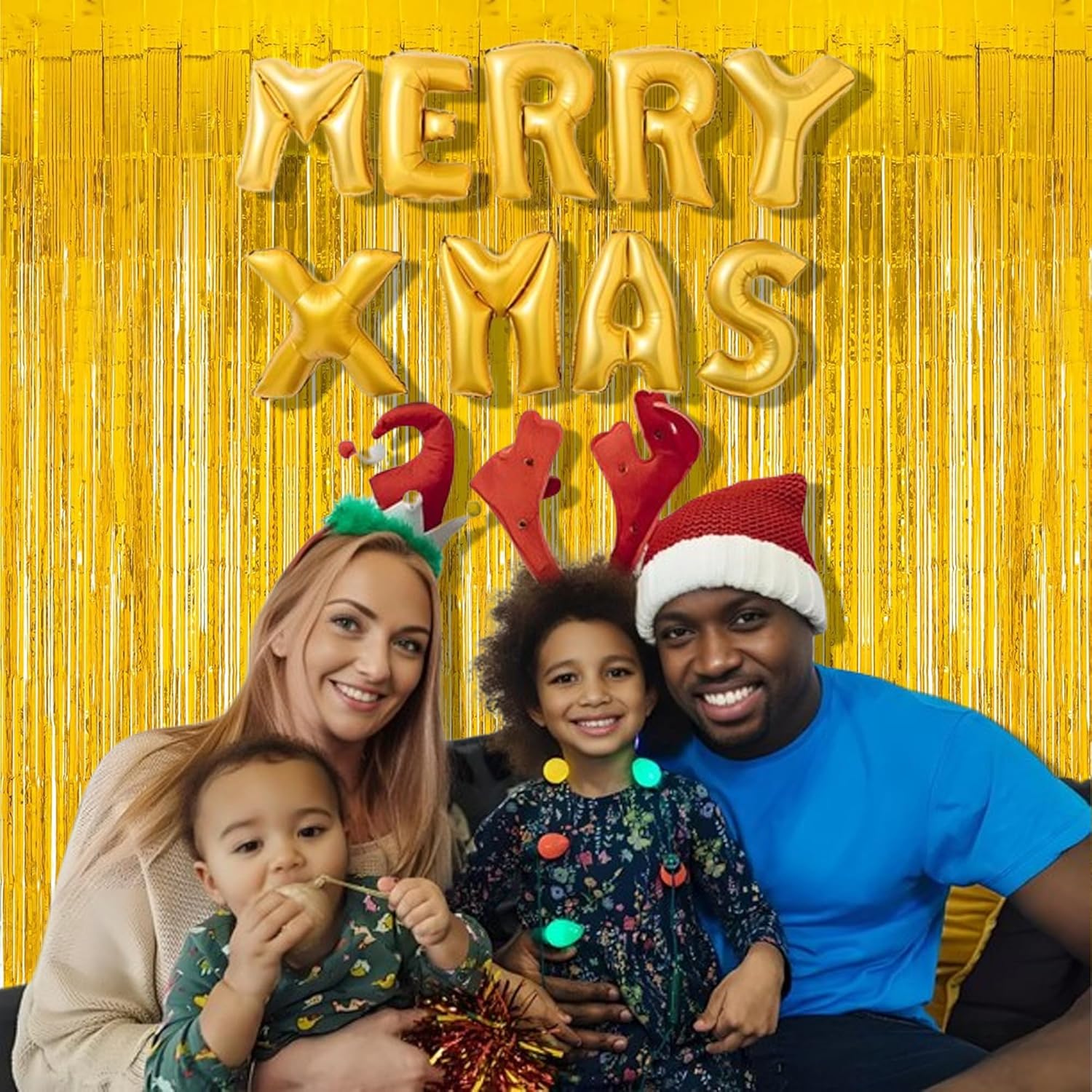 BRAVESHINE Gold Foil Fringe Backdrop Curtain - Metallic Tinsel Photo Backdrop Streamers for Men 50th Birthdays Decorations, Anniversary, Christmas, New Years, Engagement Party Decorations
