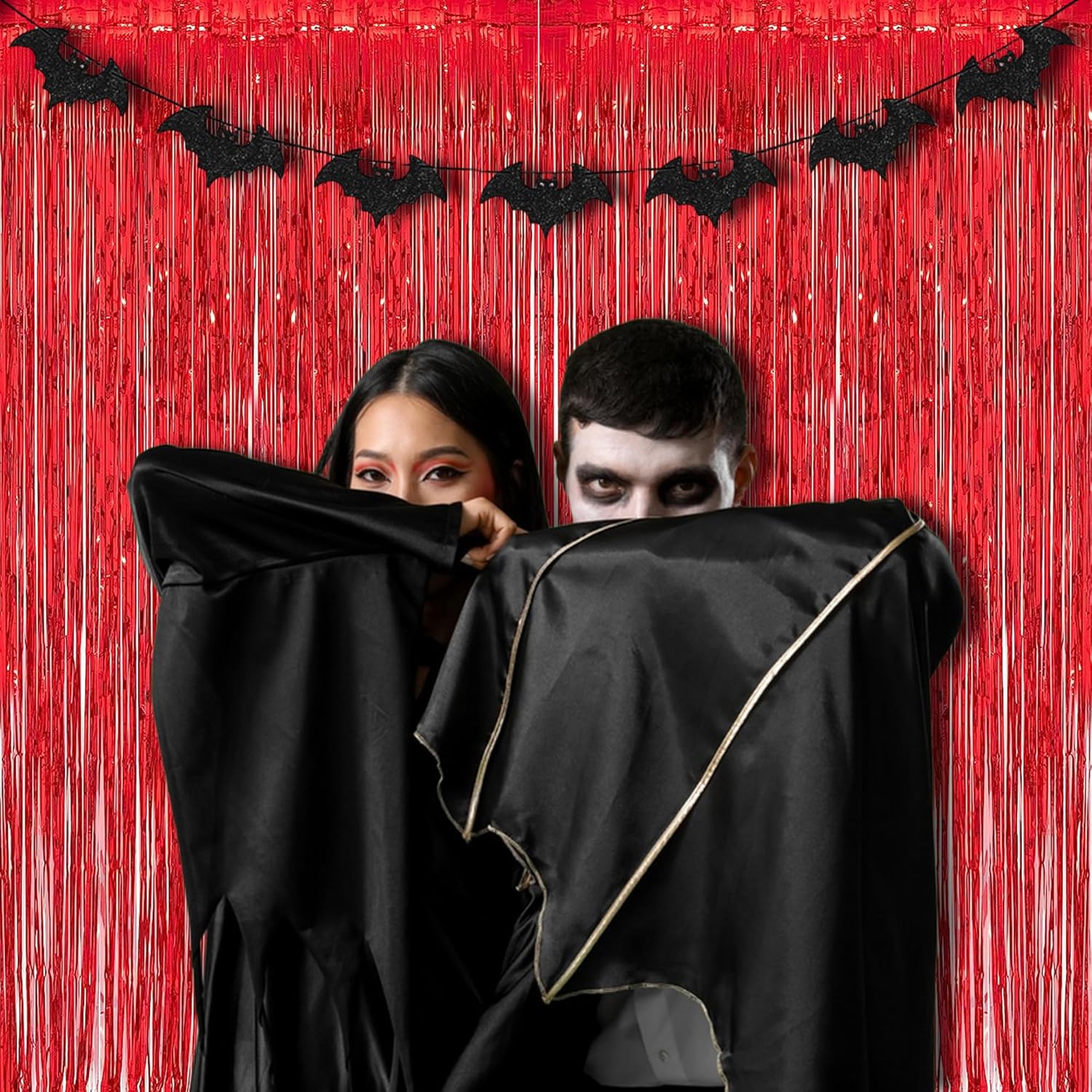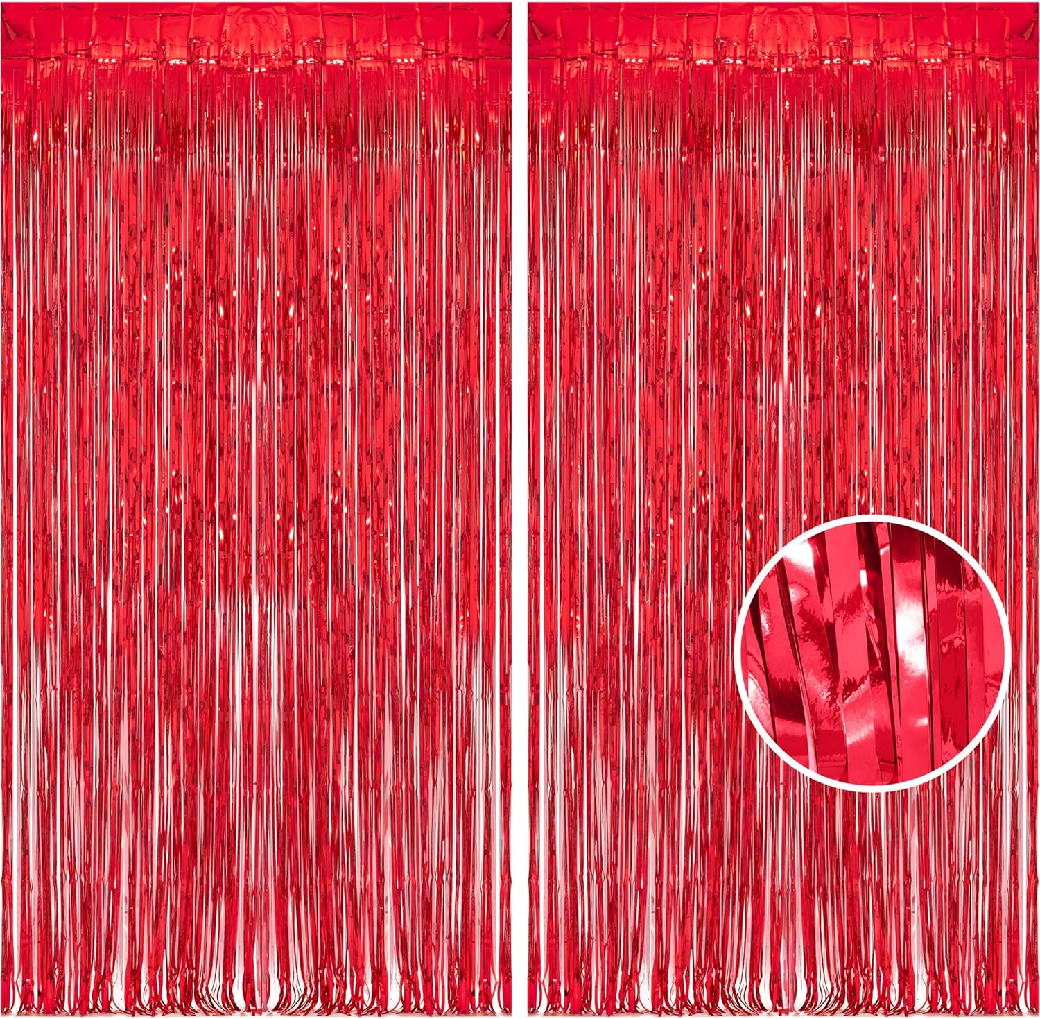 - Package Included: 2 Pack Foil Tassel Party Curtain Backdrops. If you want to make your metallic backdrop curtain fuller and thicker, you can overlap two curtains.