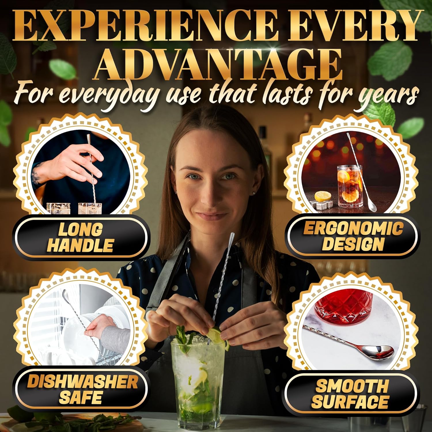 - ๐High Quality: Made from polished stainless steel, our cocktail spoon long handle is durable & built to last. It resists wear & corrosion, making it the perfect drink stirrers cocktail for long-term use