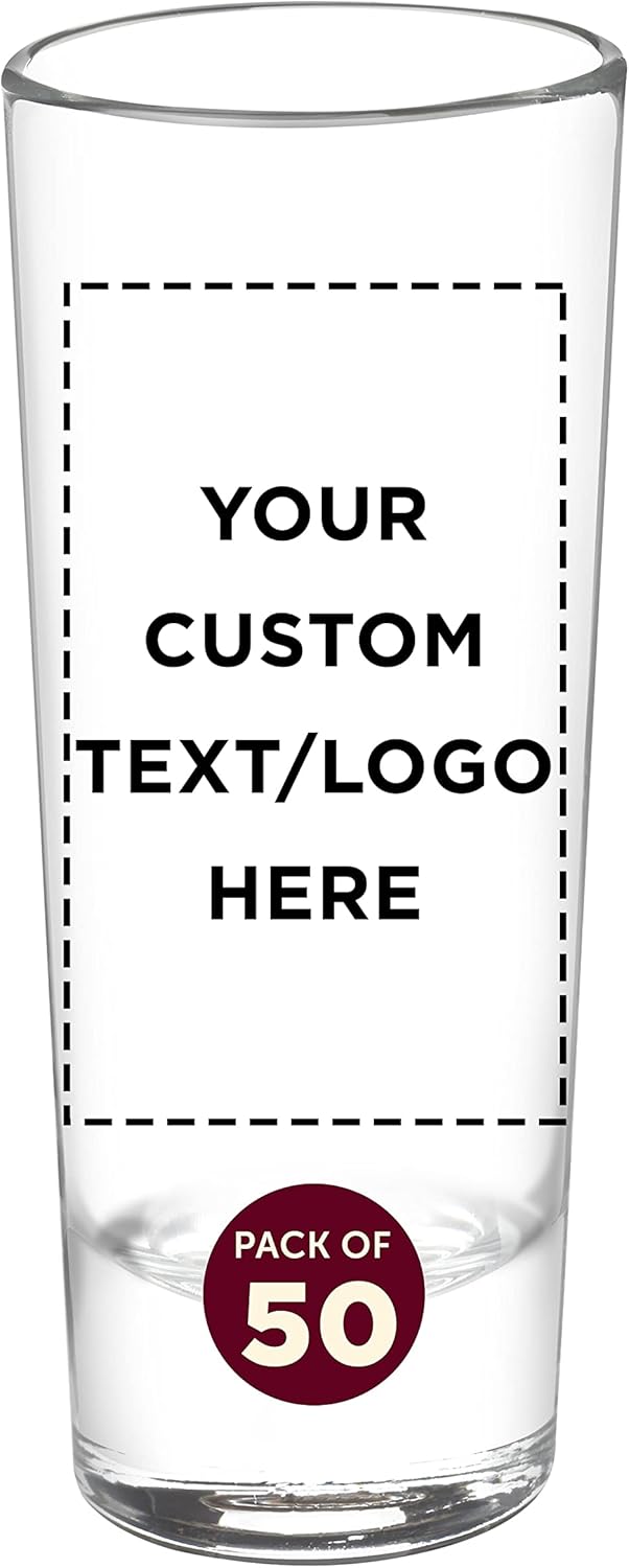 Custom Cordial Shooter Shot Glasses 2 oz. Set of 50, Personalized Bulk Pack - Great for Birthdays, Parties, Indoor & Outdoor Events - Clear