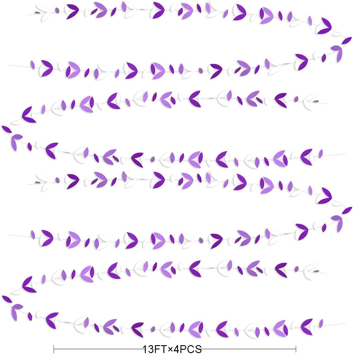 - 💜PACKAGE CONTAINS- 4 packs of white and lavender leaves party garland,each string is 13 feet/ 4 meters.Total length is 52 feet/ 16 meters.