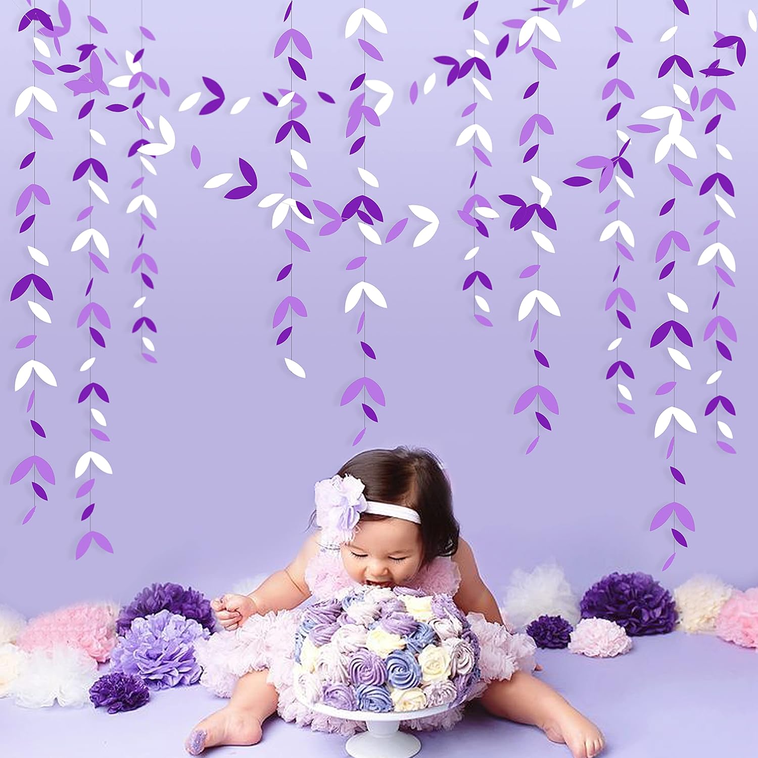 - 🤍HIGH QUALITY-Our purple lilac white backdrop leaf streamer garlands are made of double sided high-quality environmentally friendly materials-High quality cardstock,Carefully hand-made and machine-sewn together with thread.durable and reusable.