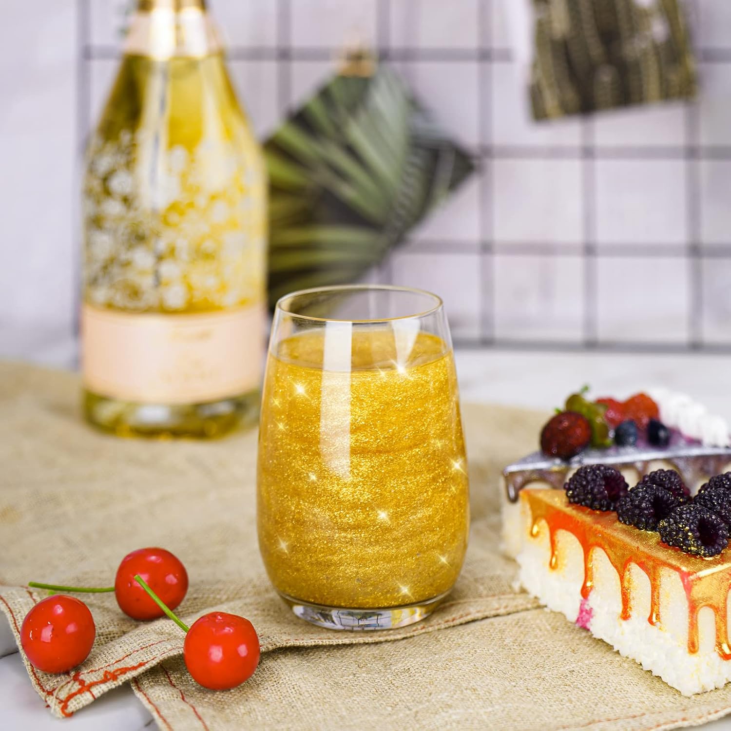 - 🌟【Use with Brews】Food-grade glitters are so fun and simple to use with brews. Add one pinch or two directly to your favorite beverage, mix it with cocktail syrups, juices, liqueurs, liquors, or spirits. Use a clear glass instead of opaque containers so that the liquid looks so cool, especially when you move it around in the glass with a stir. A tiny amount of dust can create a great visual spectacle, and clear liquids offer a great blank canvas for glitter to show off the best ability.