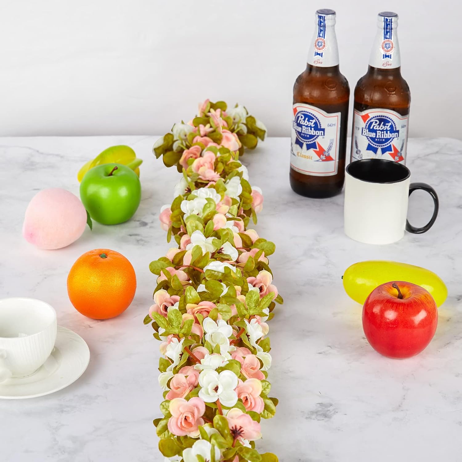 8 Pcs x 8.2 ft Flower Garland Artificial Rose Vine Flowers with Green Leaves Hanging Fake Roses Vine for Room Party Home Wedding Birthday Christmas Wall Arch Decor, Pink White Flower