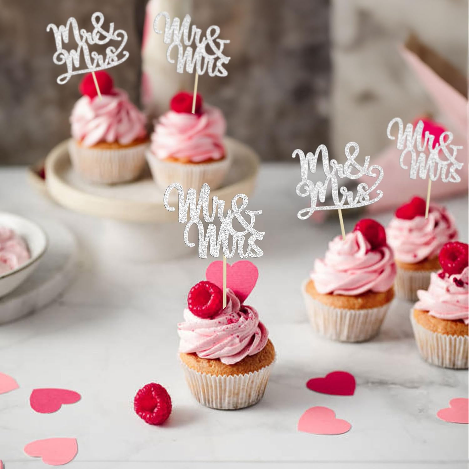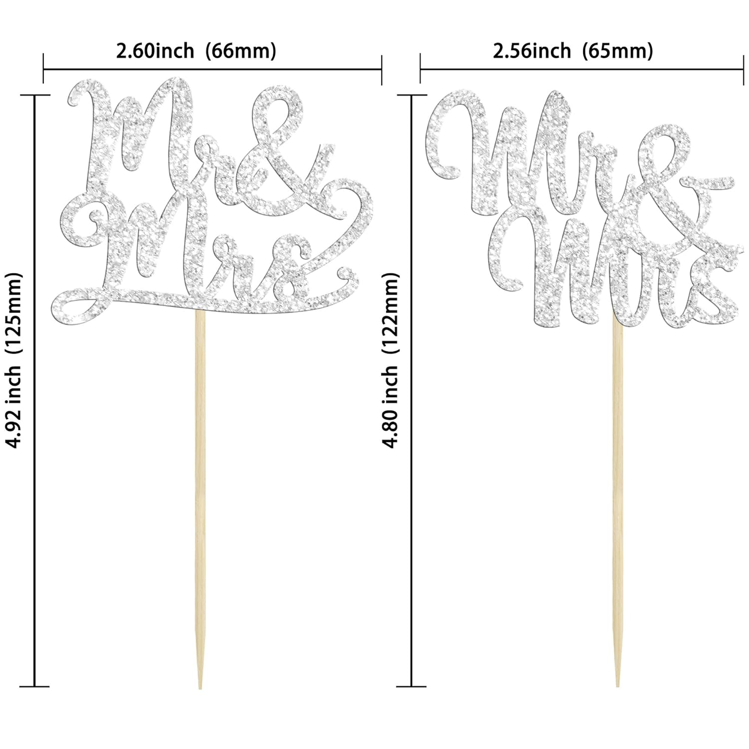 - 💍Package included: 36Pcs Silver Mr & Mrs Cupcake Toppers. Comes with assembled, so you can insert into your cake directly, which make your cake more interesting.