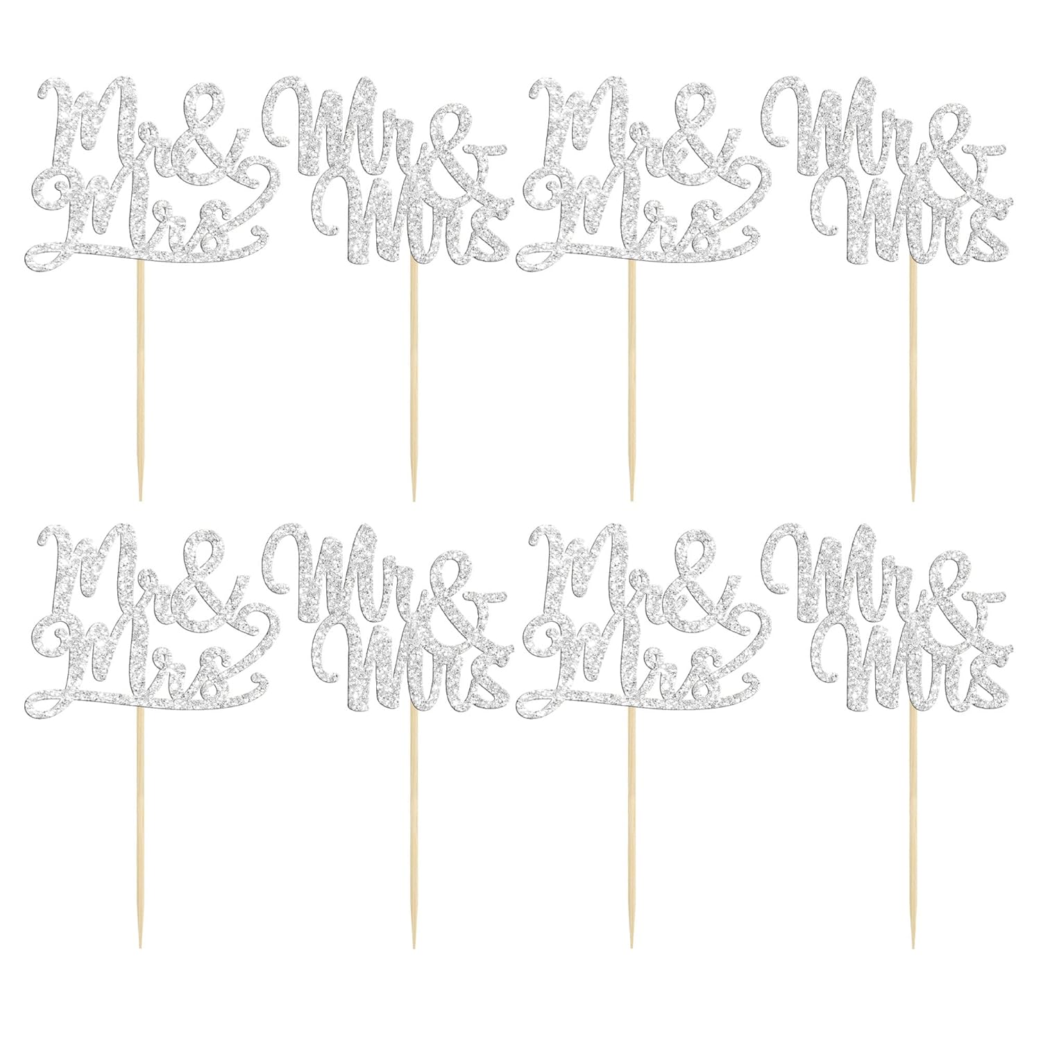 - 🧡Premium Material: These silver glitter Mr Mrs cupcake toppers are made of high quality paper and food-grade toothpick, very safe to put them on cakes, cupcakes, ice cream, fruits, pie, dessert, cheese or any dish and food appetizer you want to decorate.