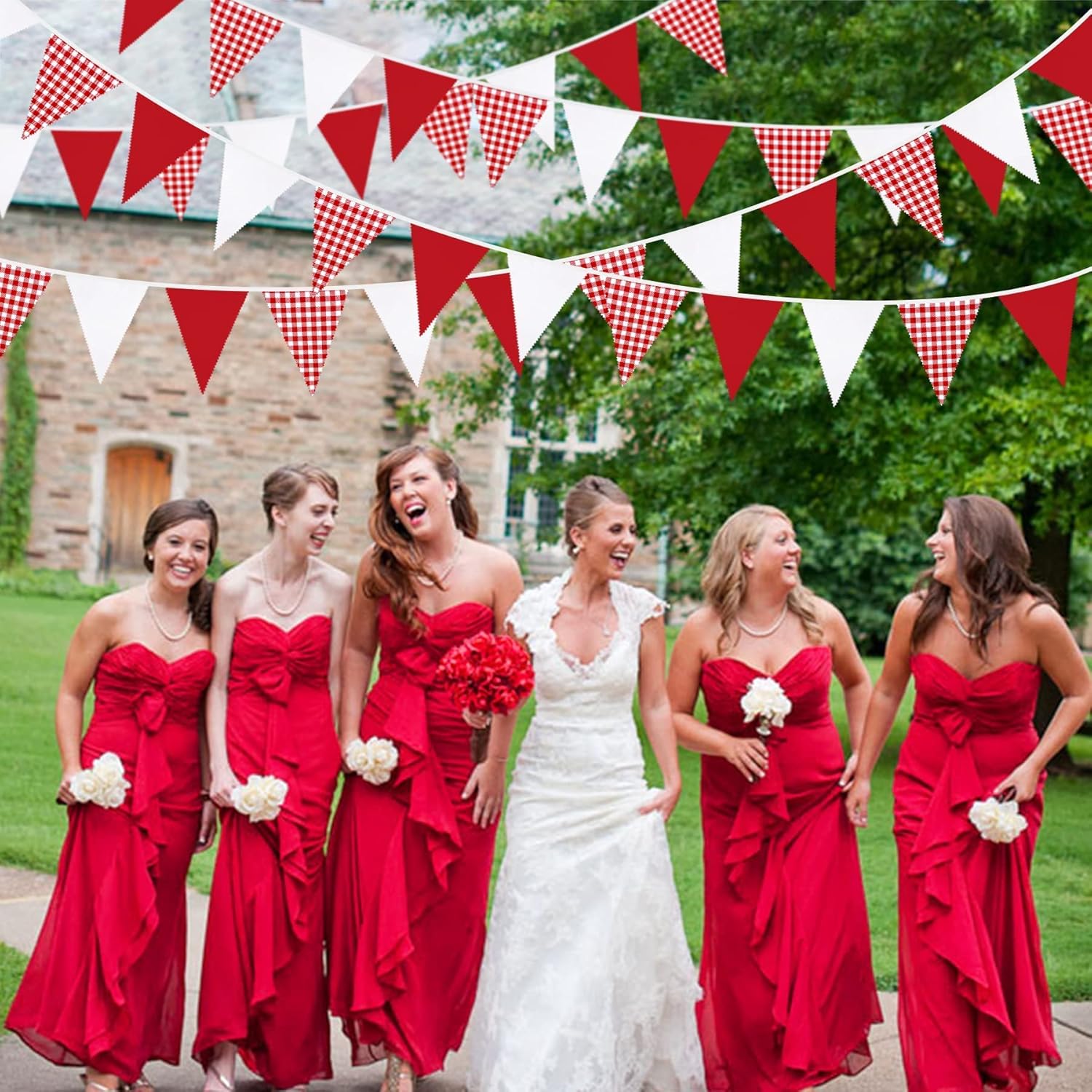 - Package Including:1 pack Christmas fabric bunting banner garland in red checkered, red and white, with 36pcs flags in 10M/32.8Feet. Flag Size: 5.5in width x 7in height.