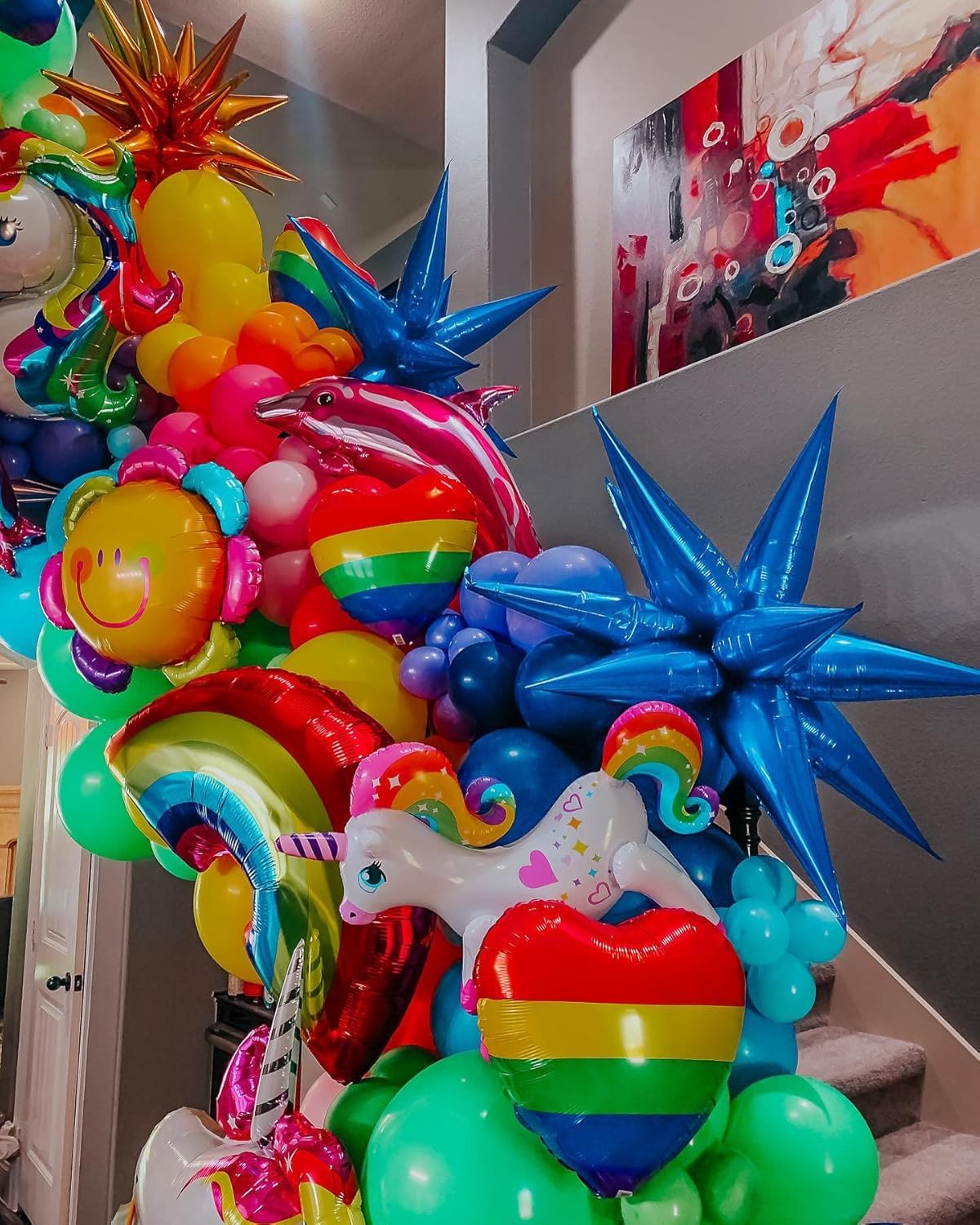 - Packing list:balloon:36pcs cone shaped balloons (12pcs cone balloons can make 1pc explosion star balloon = 3 pcs 3D foil explosion stars ) + accessories:1pc ribbon