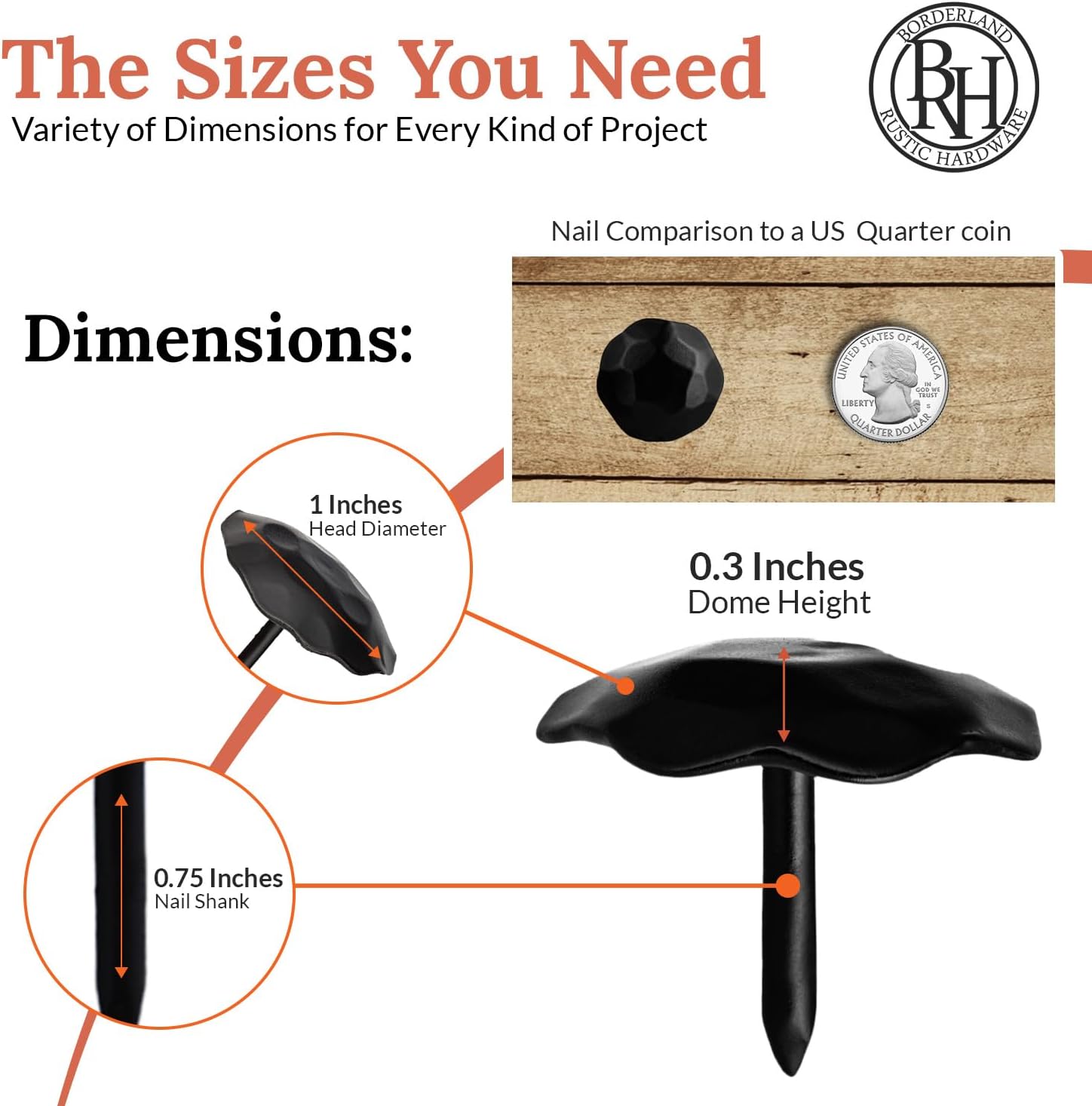 10 Pack 1" Small Round Head Iron Clavos Decorative Nails – Black – Handmade Rustic Round Fasteners for Farmhouse Shutter, Faux Wood Beams, Barn Door, Shutters, and Gates – Ornamental Wood Accent