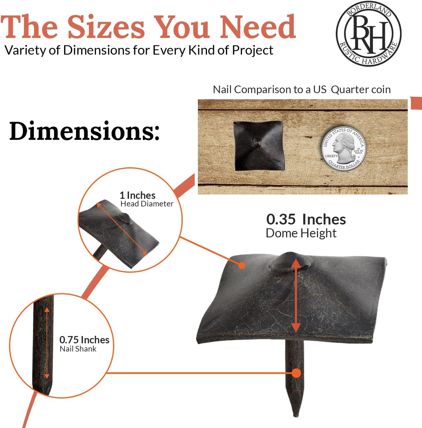 100 Pack 1" Square Head Iron Clavos Decorative Nails – Sealed Unfinished – Handmade Rustic Square Fasteners for Farmhouse Shutter, Barn Door, Shutters, and Gates – Ornamental Wood Accent