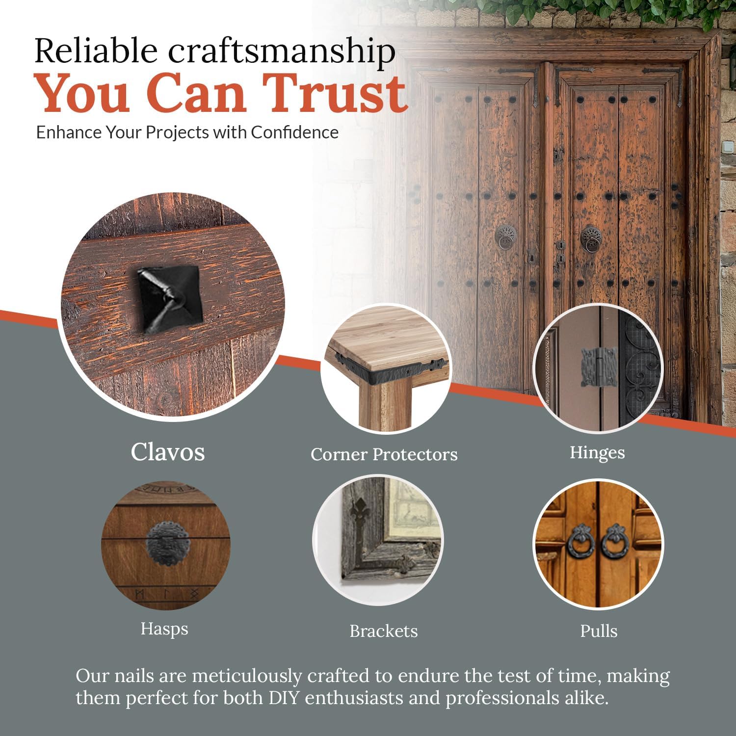 - PREMIUM FABRICATION: Each iron square nail is meticulously MIG welded by hand to ensure maximum strength and longevity. Unlike competitors who use less durable spot welding, our nails are built to withstand the elements, making them ideal for exterior shutters, faux wood beams, and other applications requiring robust and reliable decorative hardware.