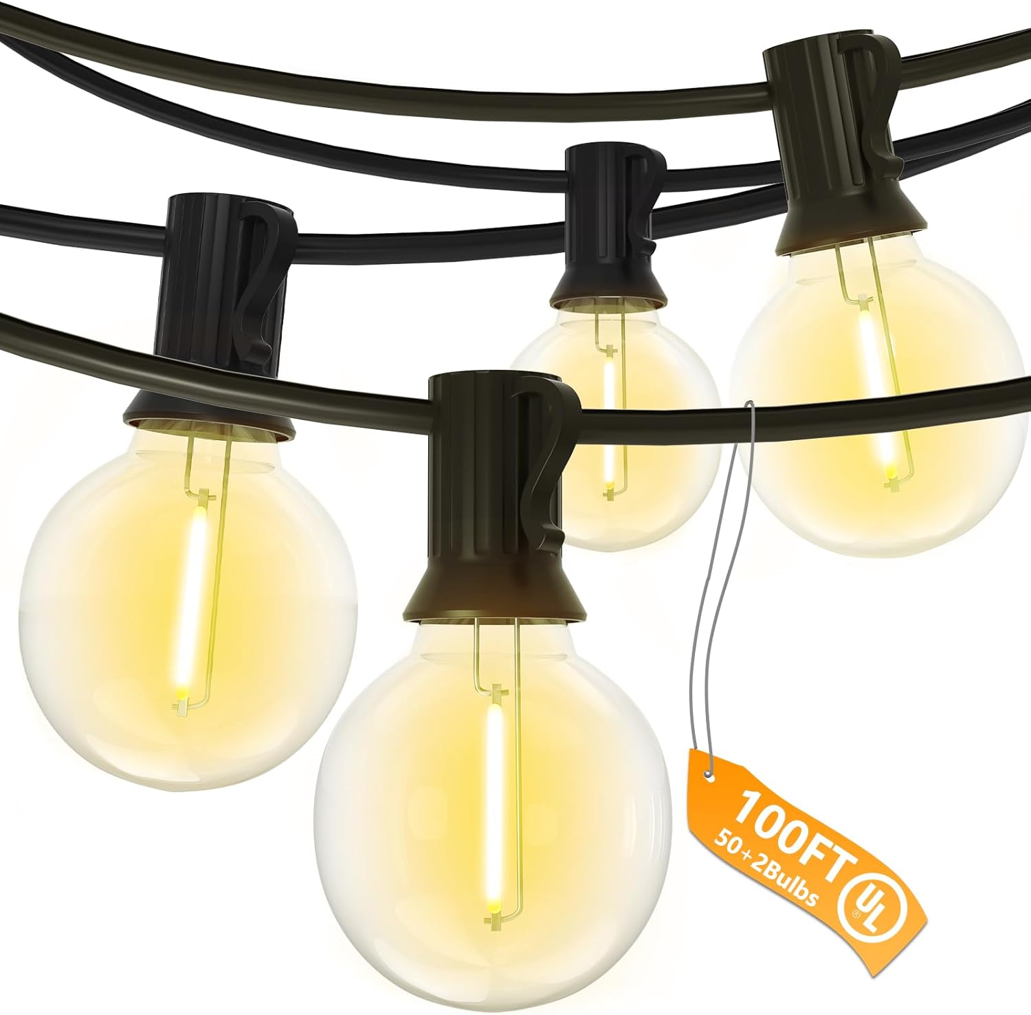- Easy to Install: 100Ft globe led string lights, Outdoor hanging string lights come with 50 G40 led globe bulbs and 2 spare bulbs. The patio string light is easy to install that each light socket has a clip to fix or place the light string to anywhere as your need