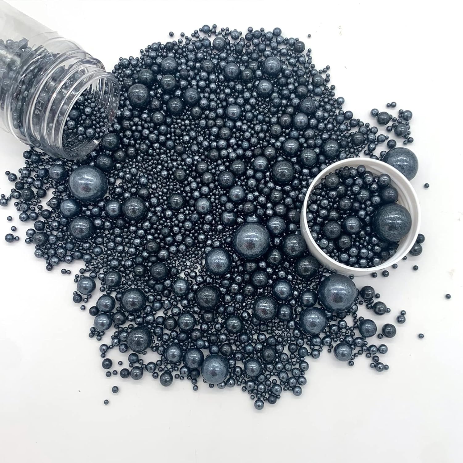 - Package includes :1 bottle edible black pearl sugar sprinkles candy ,4.58oz/130g.Ingredients: Sugar, Beet Root, Spirulina, Carnauba Wax,Gluten free,Nut free