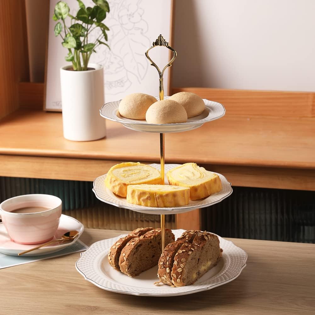 - Multiple usage scenarios: Elegant three-tier cake stand is perfect for putting on dinner feast, wedding, holiday party, baby shower, to provide delicious desserts for your friends or family.Create a sense of balance and romance.
