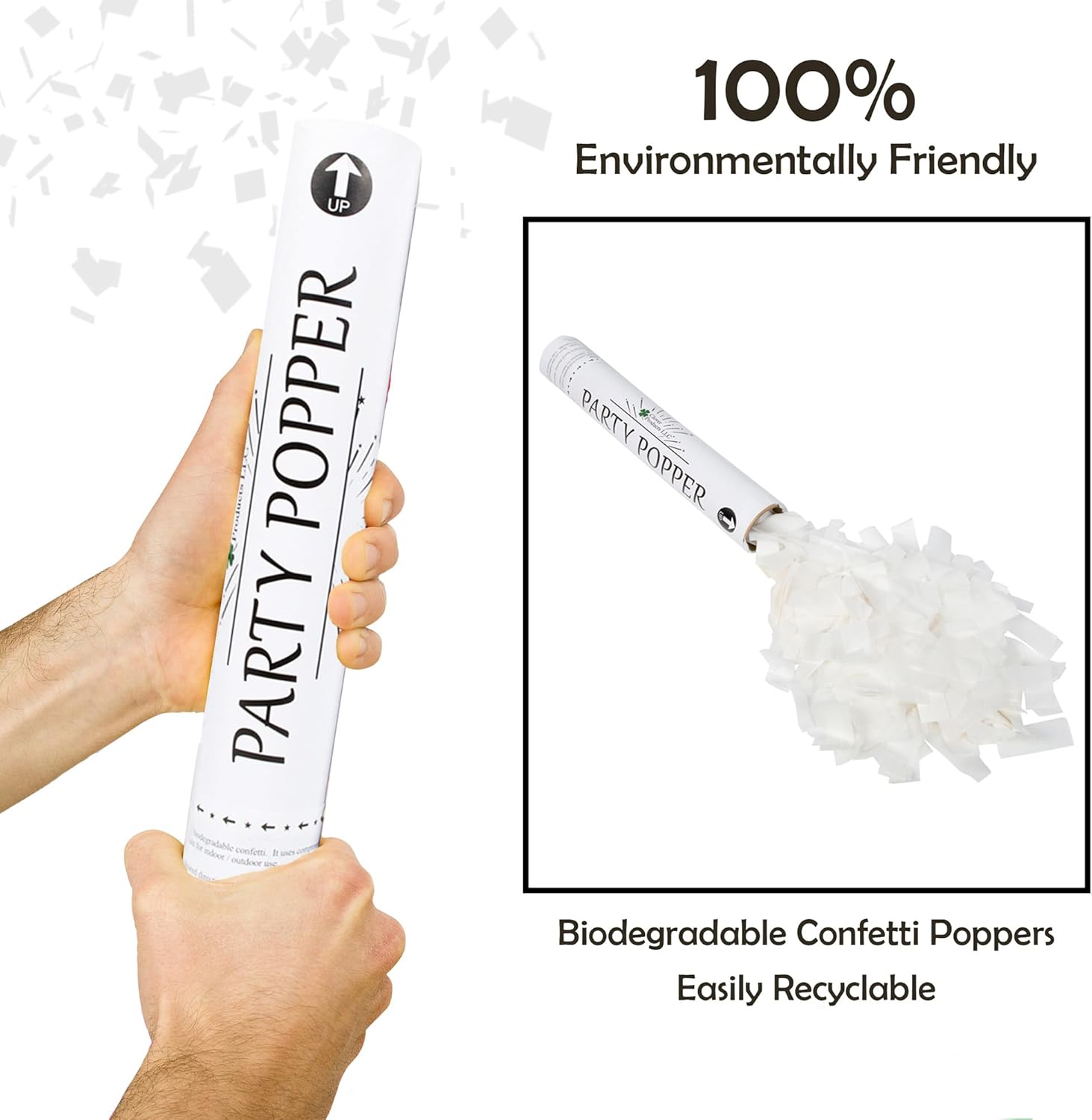 - 🎉 PERFECT FOR ANY OCCASION 🎊 – Ideal for birthdays, weddings, graduations & New Year’s Eve, these 12-inch confetti cannons make every celebration extraordinary. Our biodegradable, vibrantly colored poppers are safe for both indoor & outdoor use, ensuring a mess-free and eco-friendly party experience.