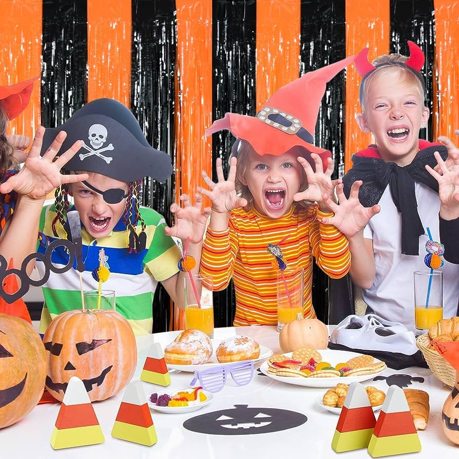 TONIFUL 2Pcs Black Orange Door Streamers,Photo Booth Backdrop Metallic Streamers Foil Fringe Curtains for Birthday,Christmas,New Year,Bachelorette,Halloween Party Streamers Decor(9.9ft x 6.6ft)