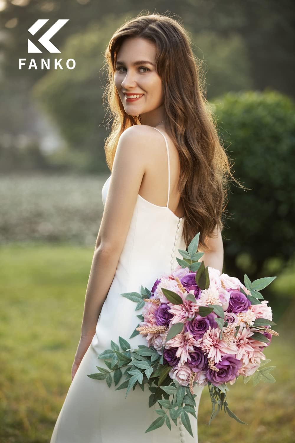 FANKO Rose Artificial Flowers Combo for DIY, Fake Purple Rose Artificial Silk Flowers with Greenery, Real Looking Artificial Faux Flowers for Wedding, Table Decoration, Centerpieces, Party, Home Décor